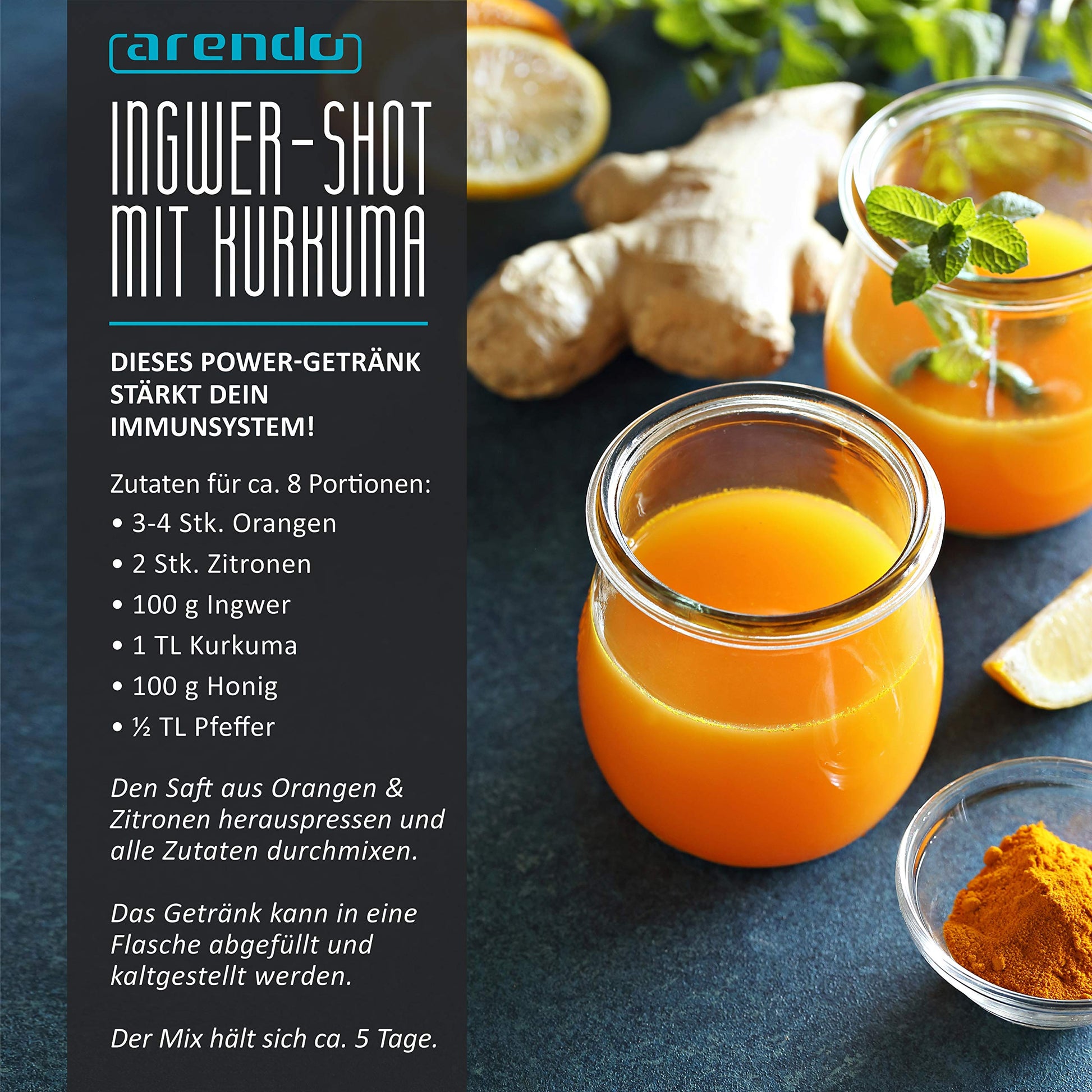 Arendo - electric orange juicer & citrus press stainless steel - juice container 200 ml - start-stop automatic - with 2 press cones - including clear hood - GS tested safety.
