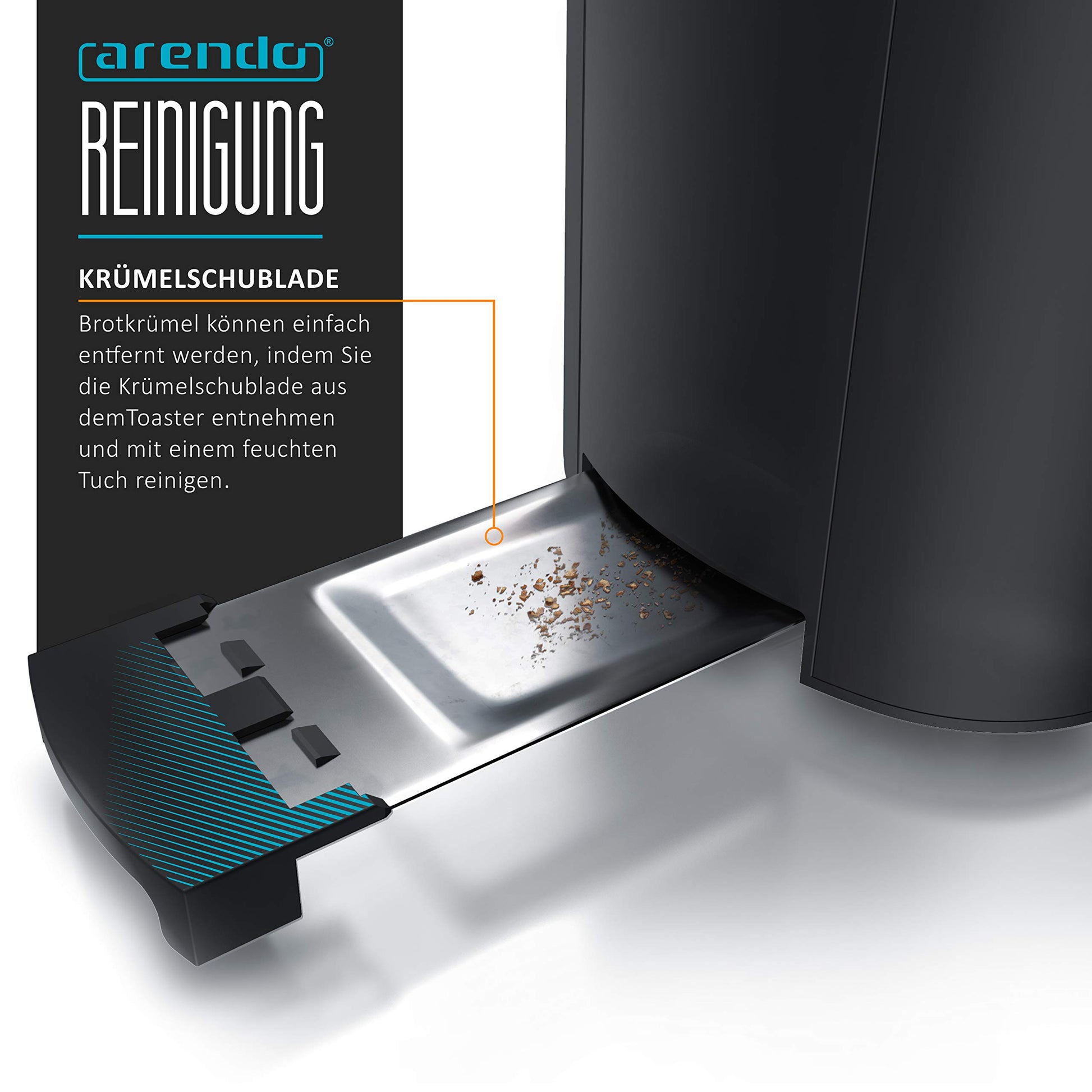 Arendo - Stainless Steel Long Slot 4 Slice Toaster - Defrost Function - heat-insulating housing - with integrated bun rack - crumb tray - display with remaining time indicator - Matt Black