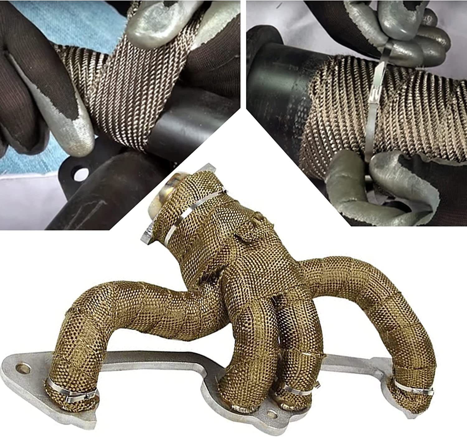 ["Material: The heat shield tape is made of high-quality basalt fiber through a special weaving process with a tolerable temperature range of -260 °C to 980 °C. It has good thermal insulation and heat dissipation.",