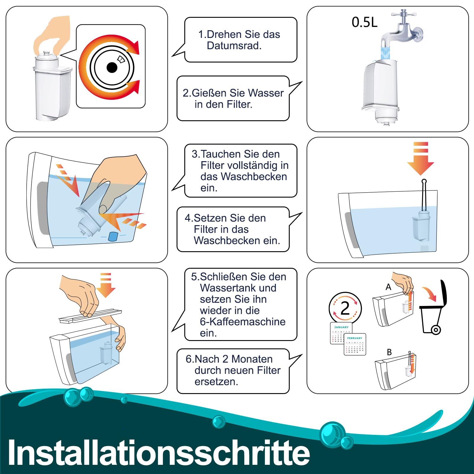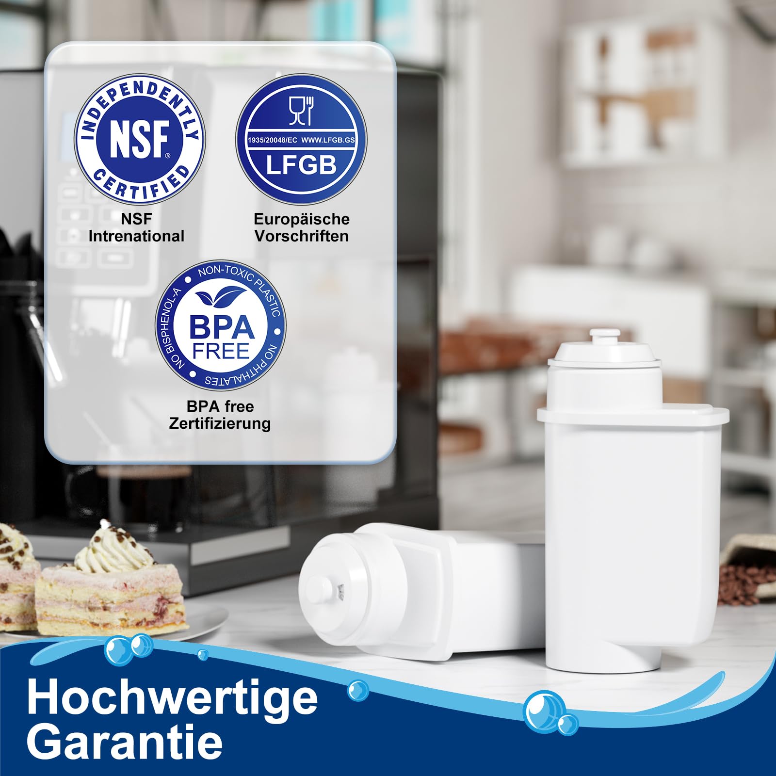 ["Applicable model: Compatible with Siemens EQ Series and plus series, EQ3/5/6 Plus/7/8/9, Replacement for Bosch TCZ-7003, TCZ7033, Siemens TZ70003/TCZ7003, TES71151, 12008246, 467873, Replacement for Brita Intenza Temial, Bosch TES71151, UNIWATER 1301, Vero/TCA7/TCC7 Series, NEFF C77V60N Series","Highly efficient filtration: The water filter is equipped with high-quality ion exchange and granular activated carbon, which can effectively reduce residual chlorine, taste, sediments, heavy metals, and other potentially harmful contaminants in the water. And get clean water","Easy operation: 1. Soak the water filter in flowing tap water for 5-10 minutes to remove air bubbles. 2. Insert the filter into the water tank for use","Note: The maximum filter lifespan is no more than 2 months. Please shorten the replacement time if the water quality is poor. (The top window of the water purifier is for recording the duration of use)","Premium quality: These water filters are tested and certified, and the plastic coating of the filter element has good sealing performance to prevent the activated carbon in the filter element from flowing into the water tank"]