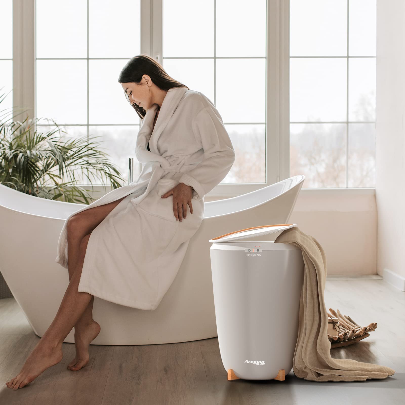 Bucket Design: This luxurious towel warmer is equipped with a single button, maintains a constant temperature for up to 60 minutes, evenly heats the entire towel inside and out. Keep towels warm around the clock and reduce bacteria. Whether you're taking a quick shower or a long relaxing soak, the warmer caters to all your needs, use it with more confidence.