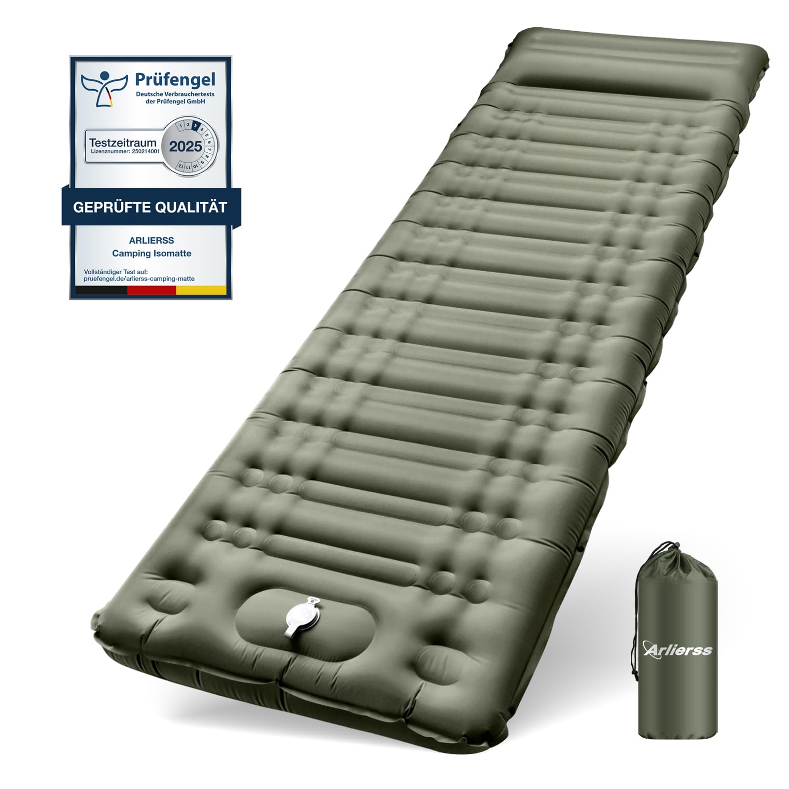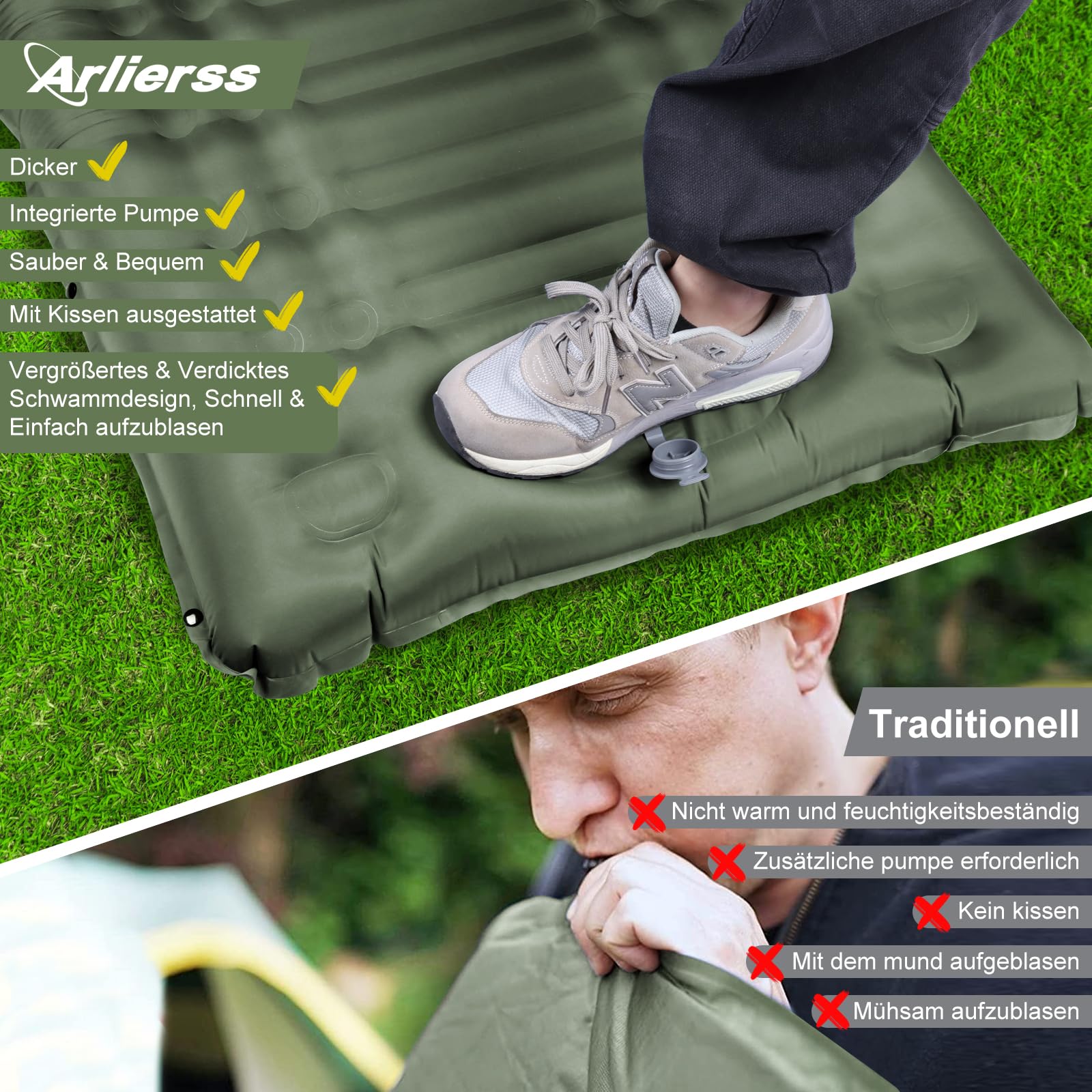 Arliers self-inflating sleeping pad, 12CM thick air mattress for camping with foot pump and pillow, Anti-Ripstop portable sleeping mat for hiking, travel, beach - army green.