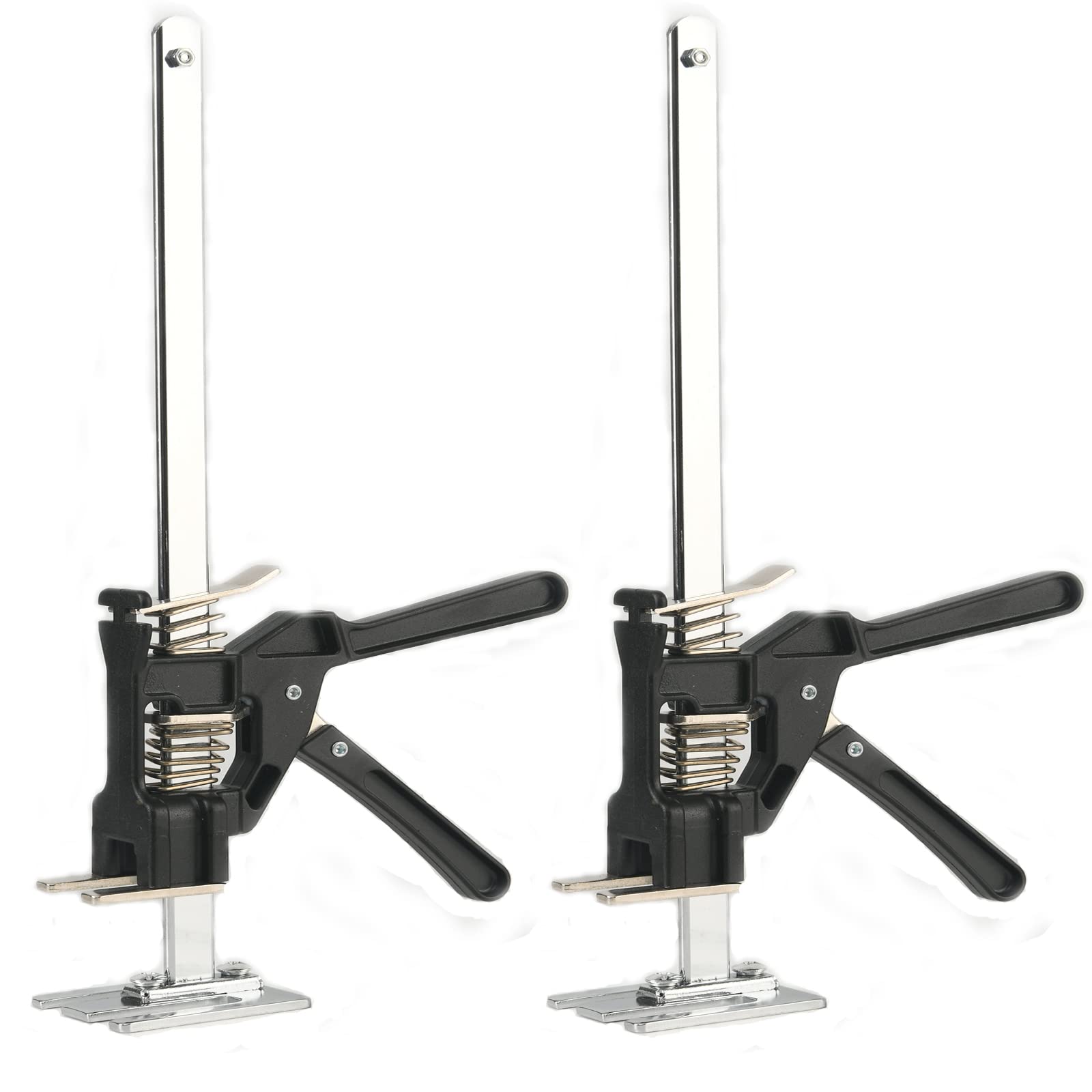 ["38 cm labor-saving arm: 2 longest hand lifting tools that can be raised up to 15 inches. It can meet all your needs. It is currently the longest hand lifting tool.", "High-quality solid steel material: Upgraded lifting tools, thickened solid steel base and lifting rod, the lifting capacity is stronger, thickened stainless steel wave spring, longer service life. The widened handle design increases the force loading surface and is more convenient to use.", "Unique steel process: The steel material of the height adjuster has undergone a secondary quenching process. The steel of the lifting tool is stronger than ordinary steel, and the support force is 5 times the original. (Quenching process: the steel is heated to a critical temperature and held for a certain time, immediately thereafter immersed in a cold medium and rapidly cooled) can improve the strength, toughness, and wear resistance of steel.", "Multifunctional labor-saving arm: The stainless steel labor-saving height adjuster is very suitable for door and window installation, flooring, wood splicing, lifting furniture, tiles, goods, plywood, countertops, frames, porches, cabinets, working with two people. Use the height adjuster that can be easily released by one person, is the most powerful installation assistant.", "Simple and applicable: Arm-hand tool jack set can be freely adjusted up and down to easily control the height. Hold the handle to increase the height, and lightly press the steel pressure plate to decrease the height. It is the best gift for installers and carriers or friends who like to do practical things."]