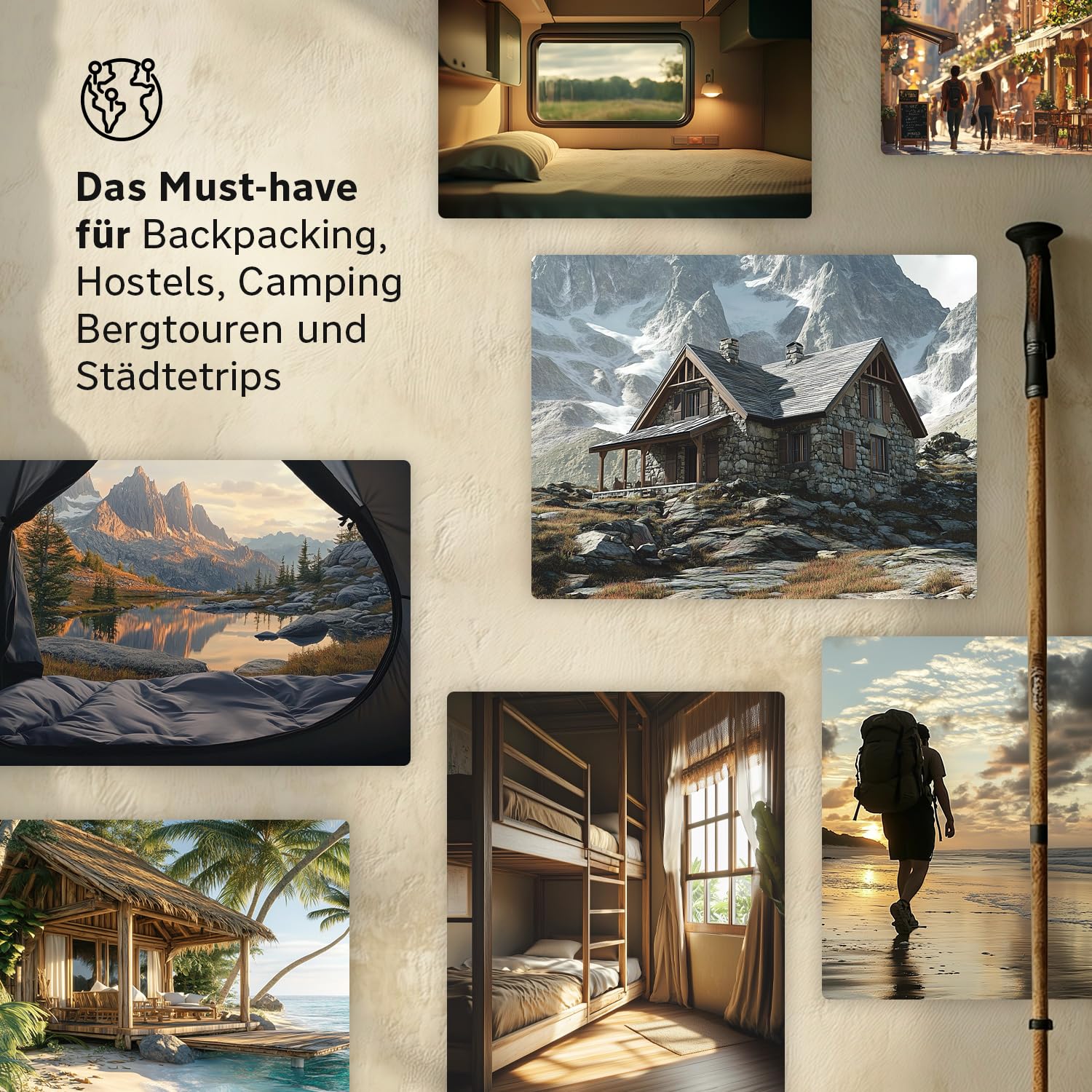 ["✅ ULTRALIGHT & COMPACT: Handy, thin microfiber sleeping bag with only 230g weight (equivalent to an apple) and extremely small pack size (7 x 16cm). Includes compression bag.", "✅ HYGIENIC: Whether in dirty bedding, sleeping bags, backpacking, hostels or huts, the liner protects against dirt and provides a hygienic stay – machine washable at 30°C and sterilizable in the microwave.", "✅ PRACTICAL: Comfortable dimensions (90 x 220cm), a large entry opening (150cm), a pillow storage pocket, and a reinforced entrance area with fabric extensions ensure a restful sleep.", "✅ BREATHABLE: The silky soft summer sleeping bag is made of 100% microfiber – making it extremely durable, tear-resistant, breathable, and pleasant on the skin. Moisture is effectively diverted.", "✅ TRAVEL: Developed by passionate backpackers, the sleeping bag is the perfect companion for travel to all countries. Ideal for hostels, homestays, trekking / hiking trips, and couchsurfing."]