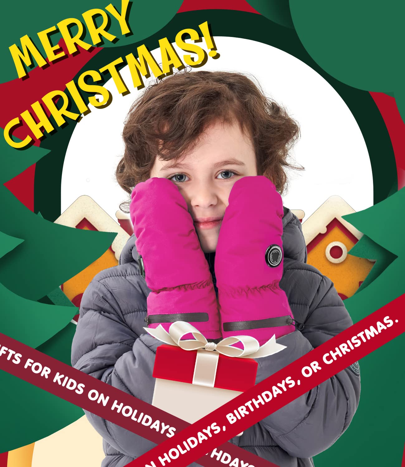 AROMA SEASON Heated Gloves for Kids Baby with Battery | Heated Children's Mittens for Toddlers | High Heating and Battery Performance | High-Quality Craftsmanship (pink, S/M)