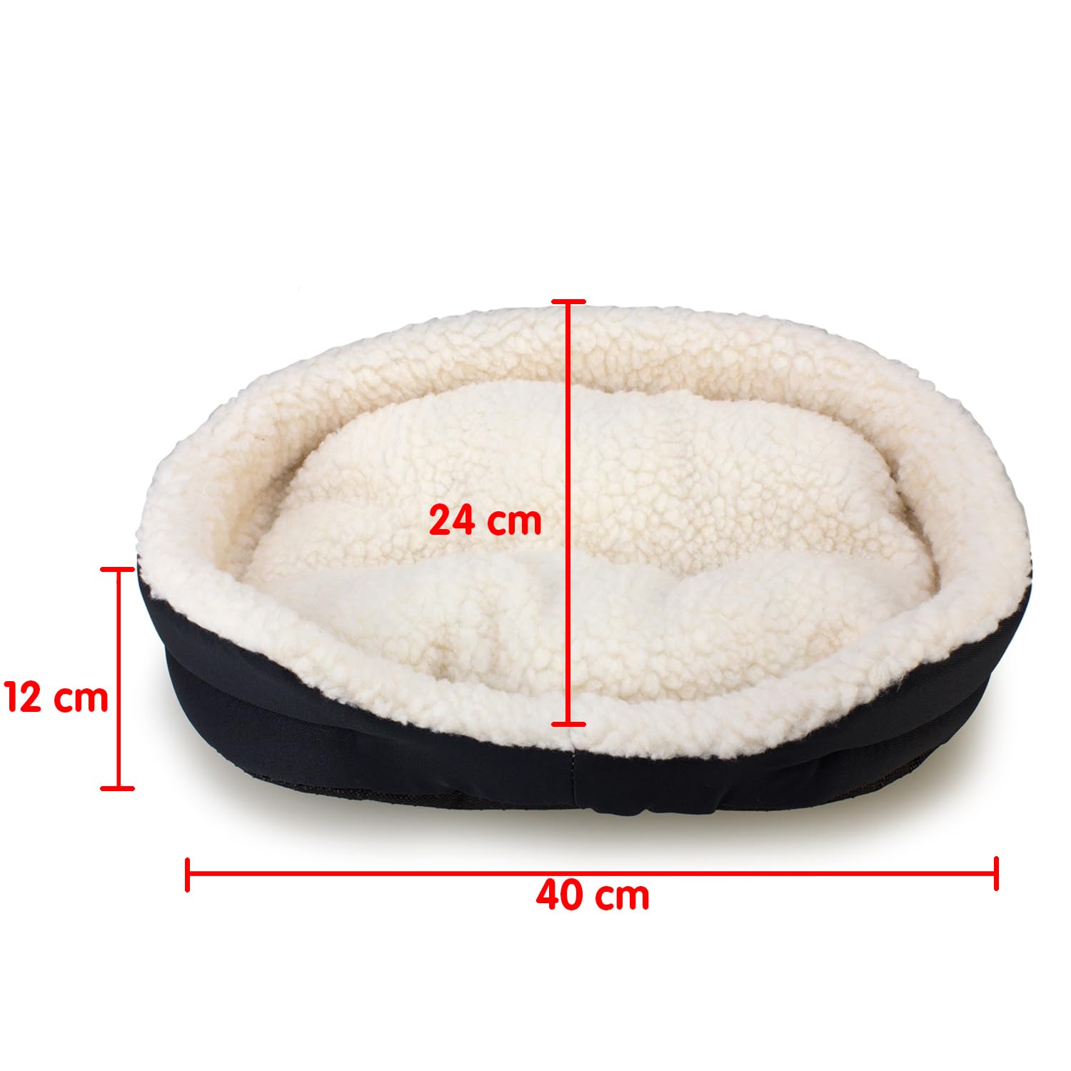 Plush bed for a comfortable nap for your pet. Lambskin feed. Soft touch. Provides warmth and comfort for your pet. Color: Black. Dimensions: 40 x 24 x 12 cm.