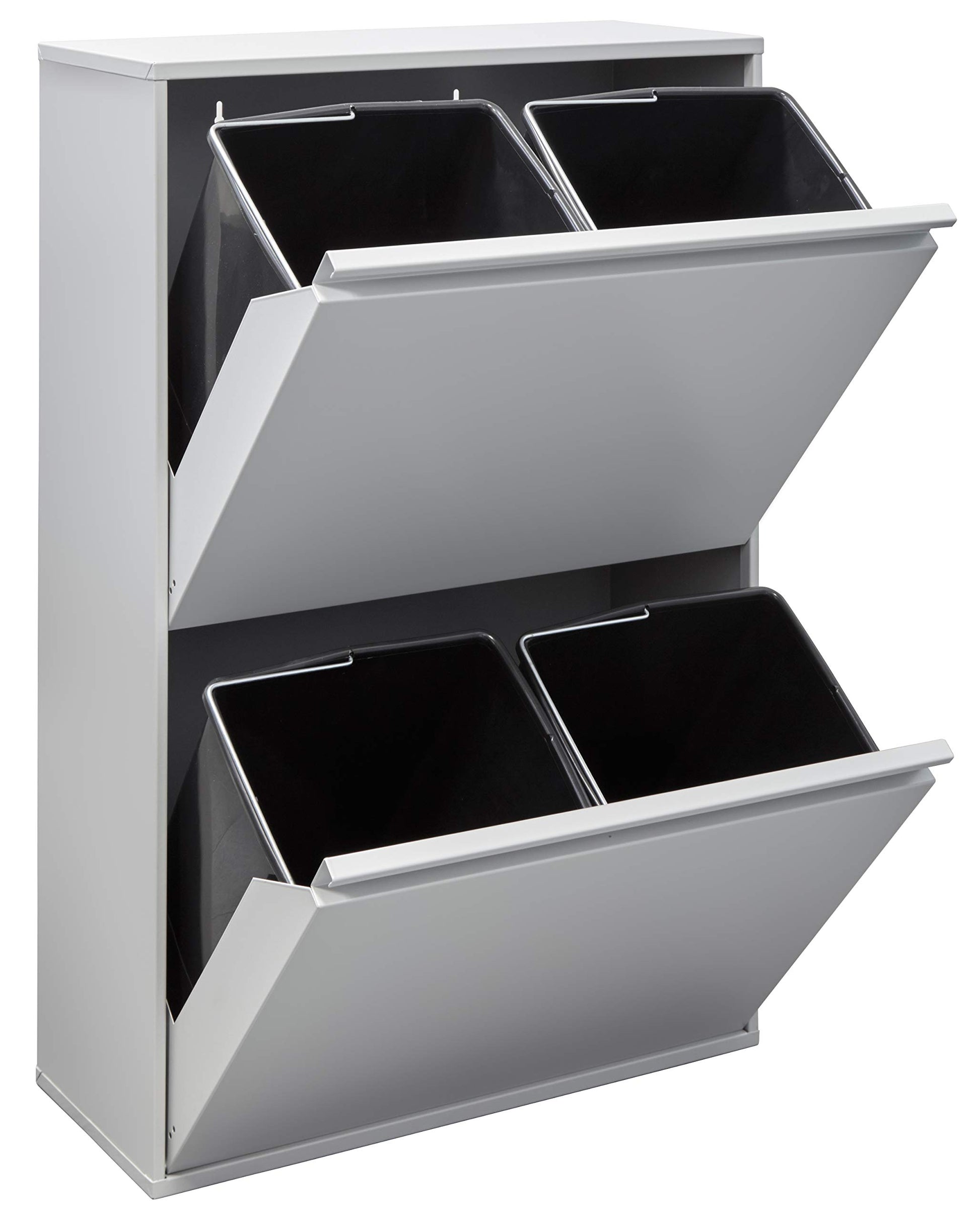 ["RECYCLING MADE EASY: Designed for convenient and easy waste separation. With independent compartments and tilt openings for each 2 bins. The inner bins remain hidden inside the compartments, avoiding bad odors.",