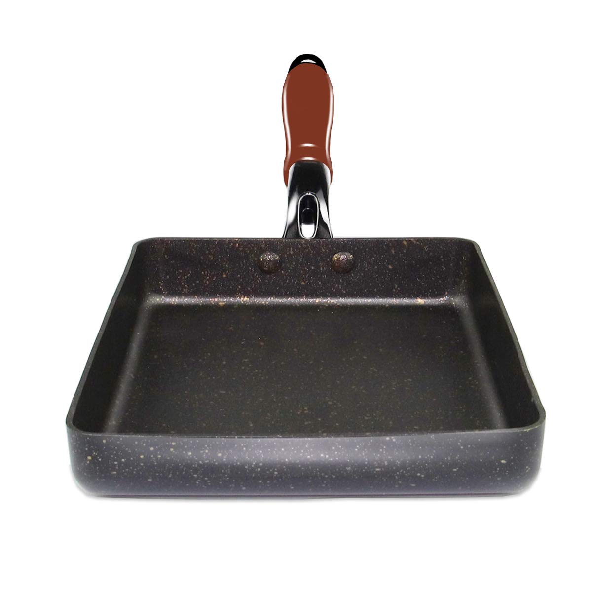 Artcome Japanese omelette pan Tamagoyaki egg pan Rectangular mini frying pan with silicone spatula and brush, black plate (Black)