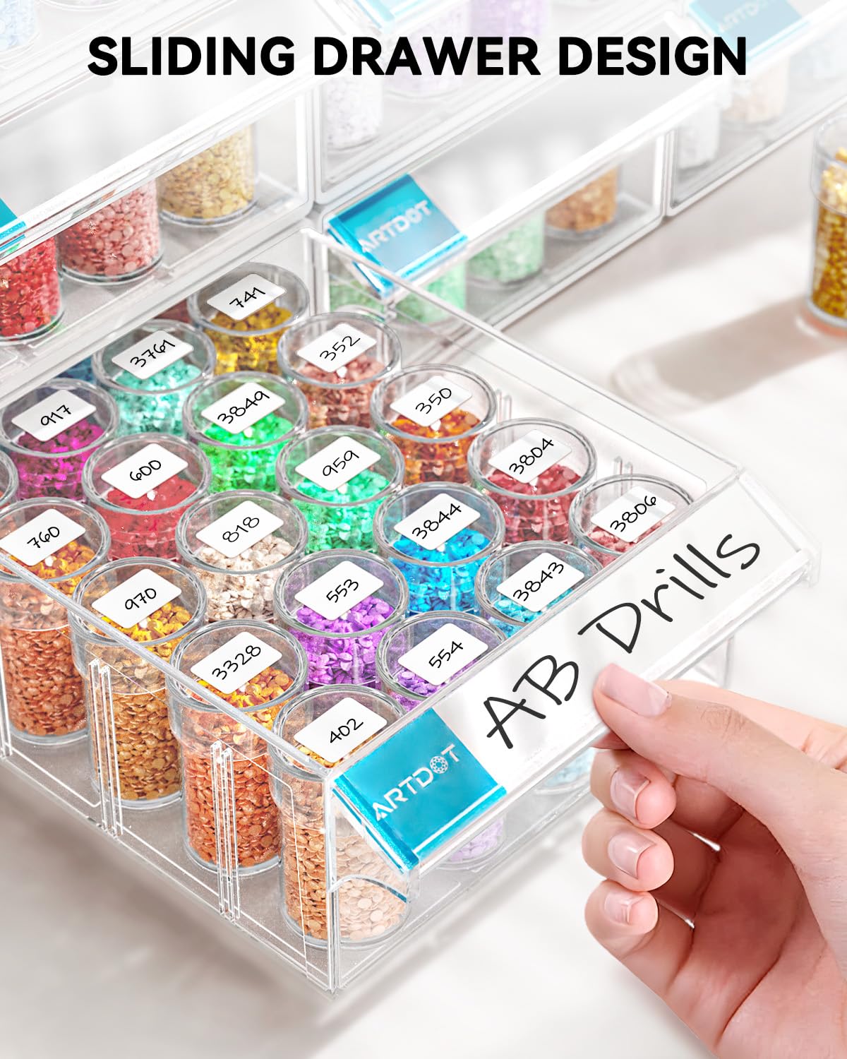 "DRAWER DESIGN - Beads can storage 128 different colors in drawer storage total. Slide effortlessly through drawers for diamond retrieval and organization, saving time for crafting while also shielding containers from dust."