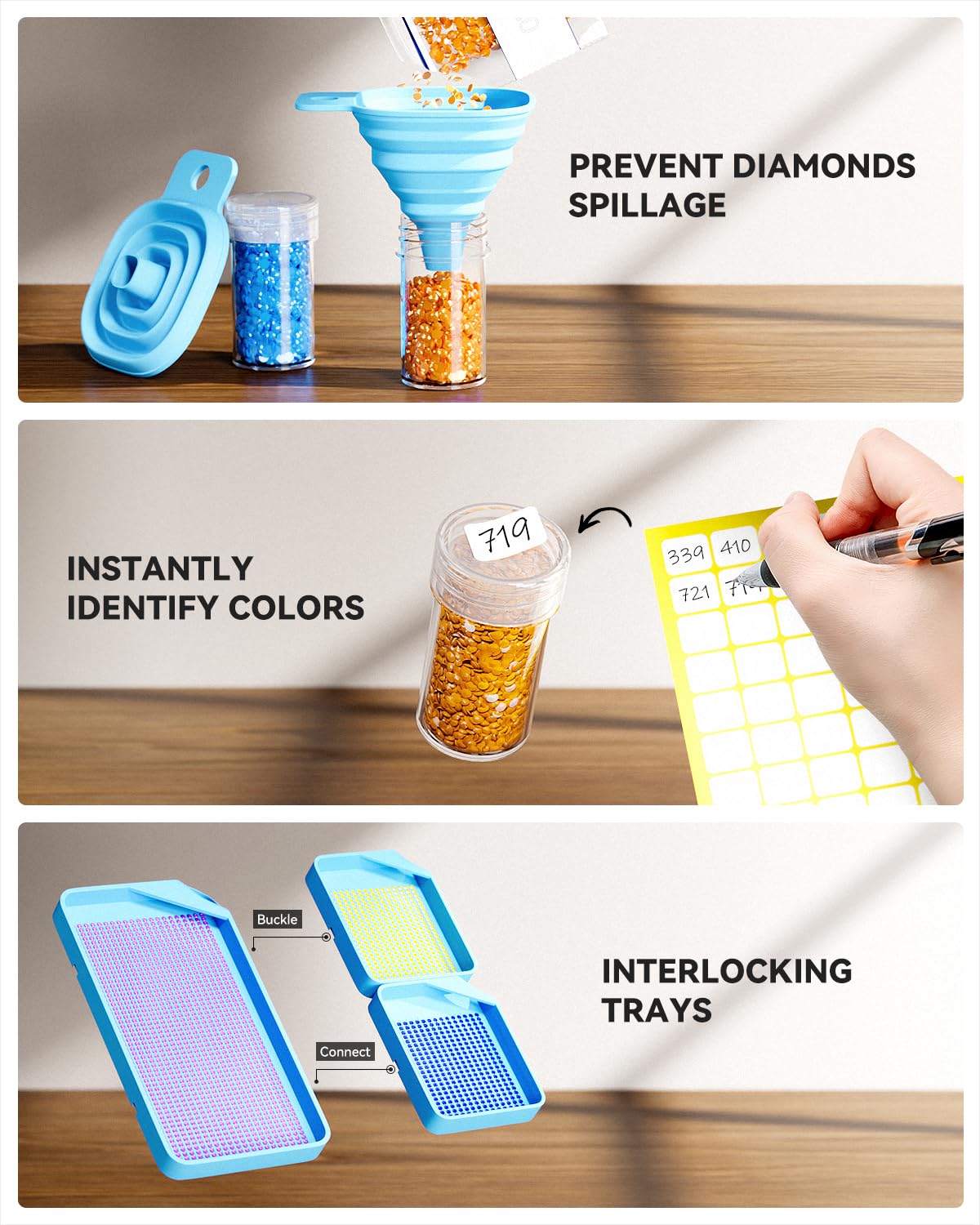 ["Game Changer"] With the collapsible silicone funnel, you can fill diamonds more safely and easily without any excess spilling. Convenient to use, carry, and store. Say goodbye to messy transfers!