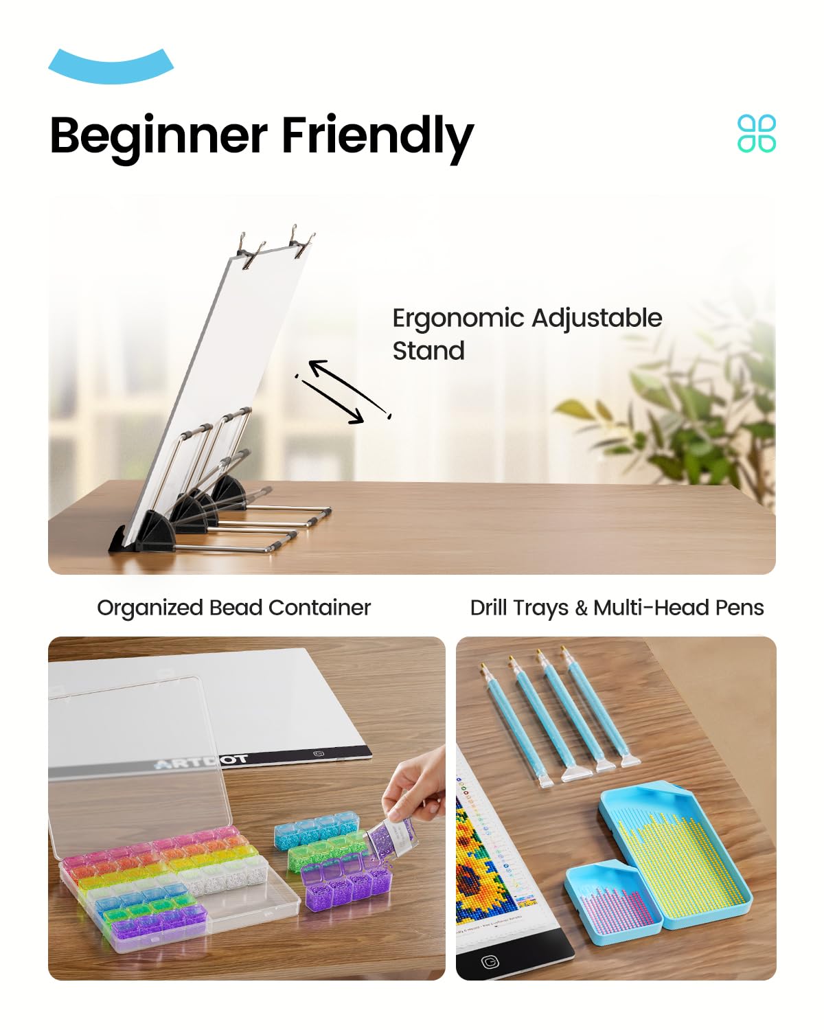 ARTDOT light table A3 as 5D diamond painting accessory, adjustable brightness diamond painting light pad with stand for adults.