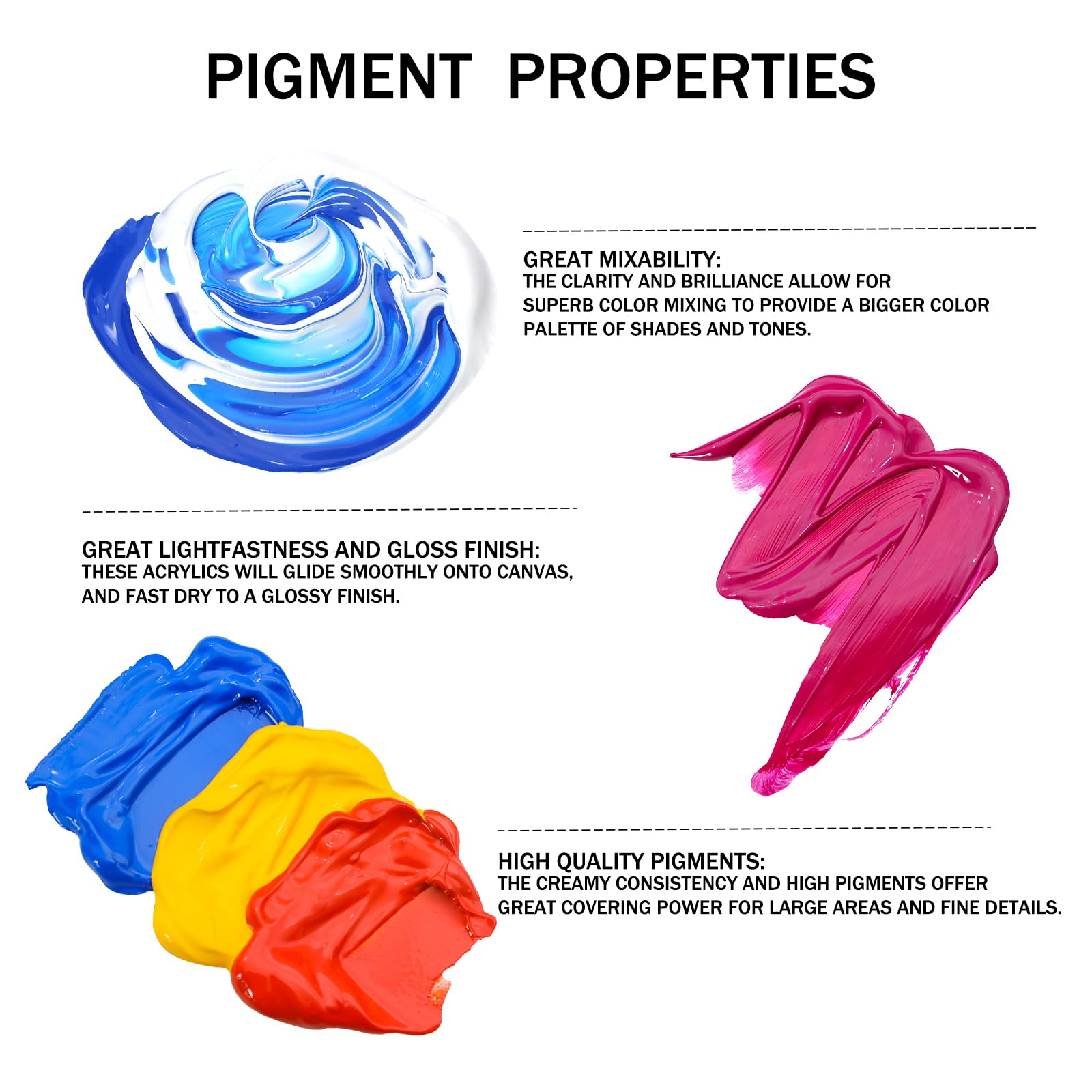 Safe: Our acrylic paints are non-toxic, acid-free, and certified for testing according to ASTM D-4236.