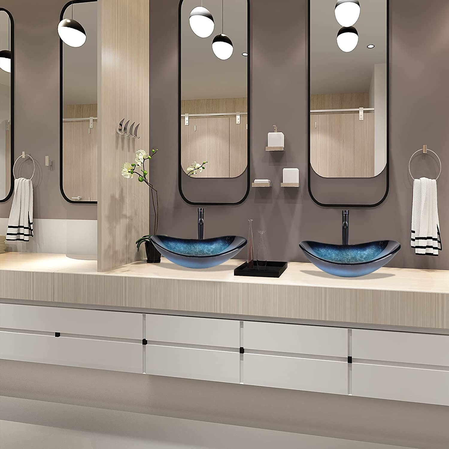 ARTETHYS glass countertop sink with faucet drain, oval washbasin washbasin set in blue, black, for bathroom, kitchen, guest WC.