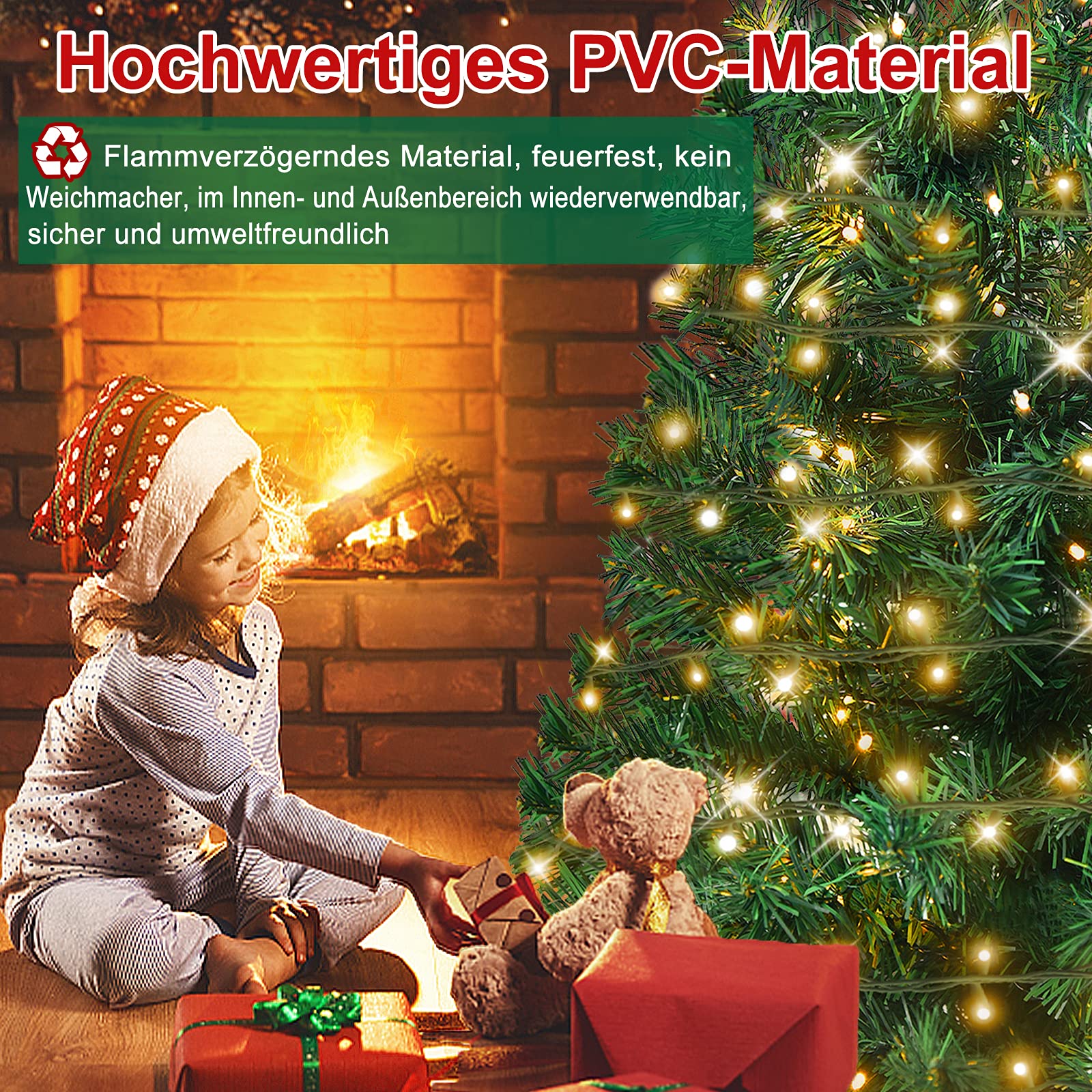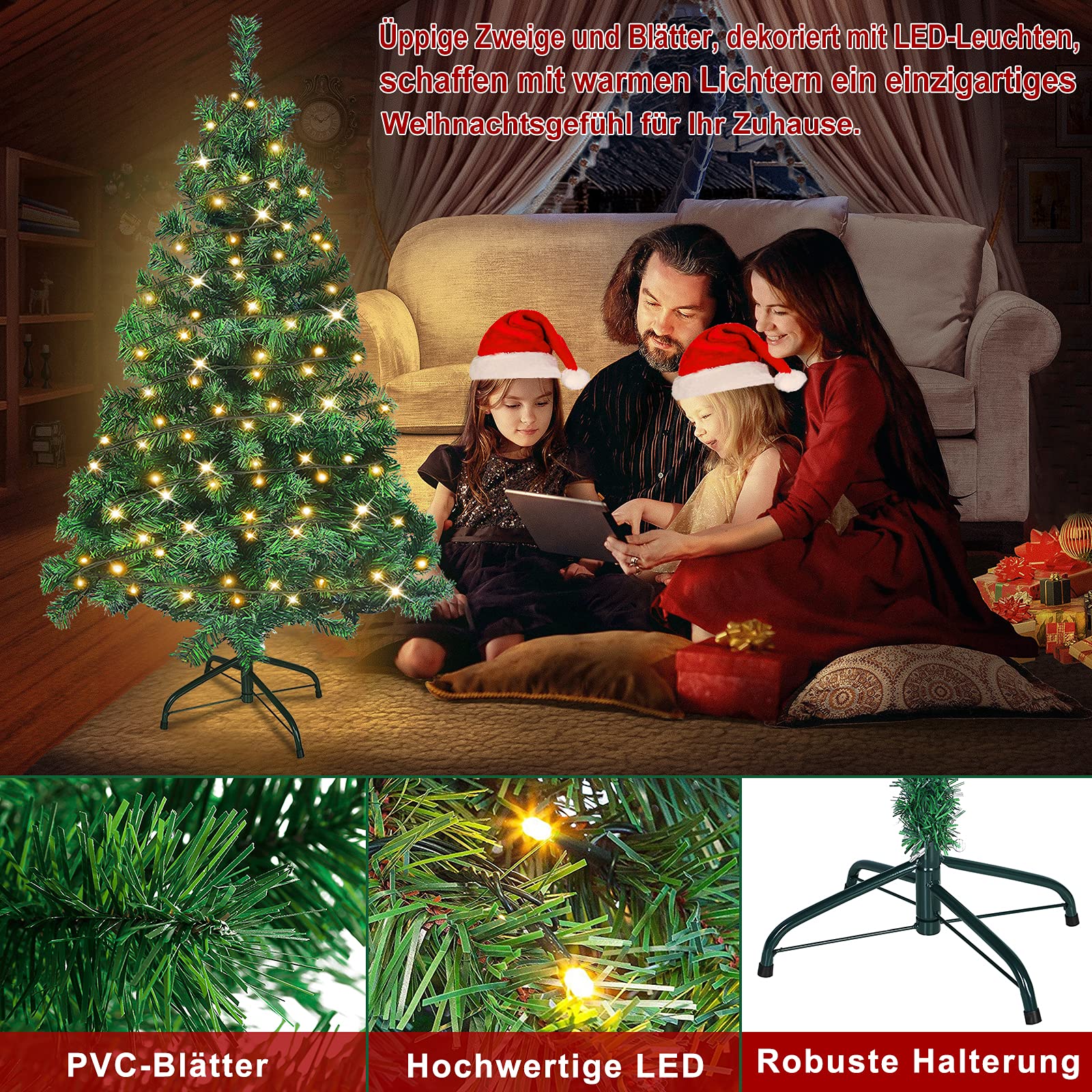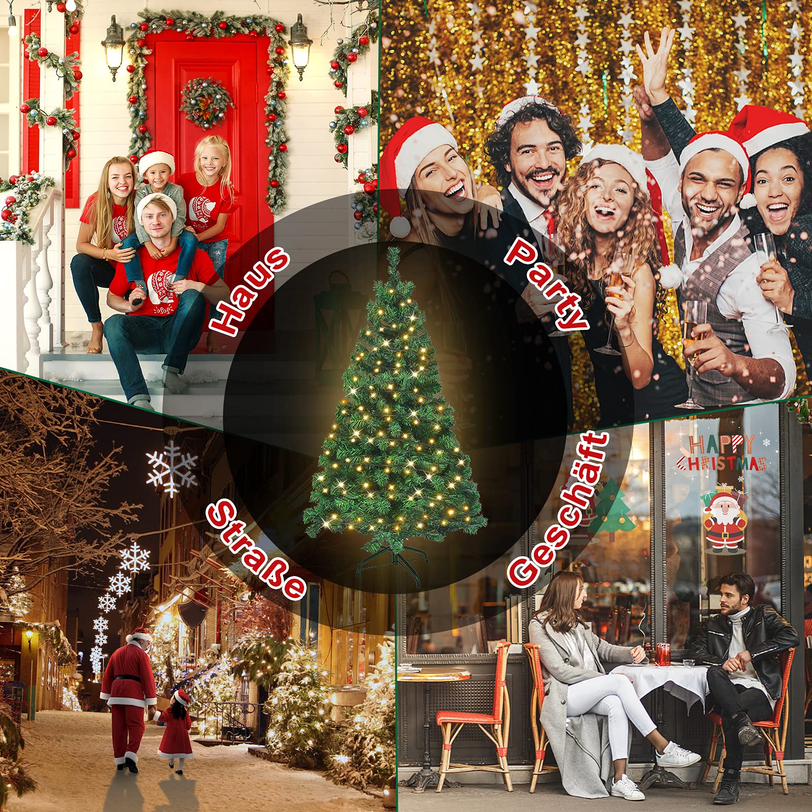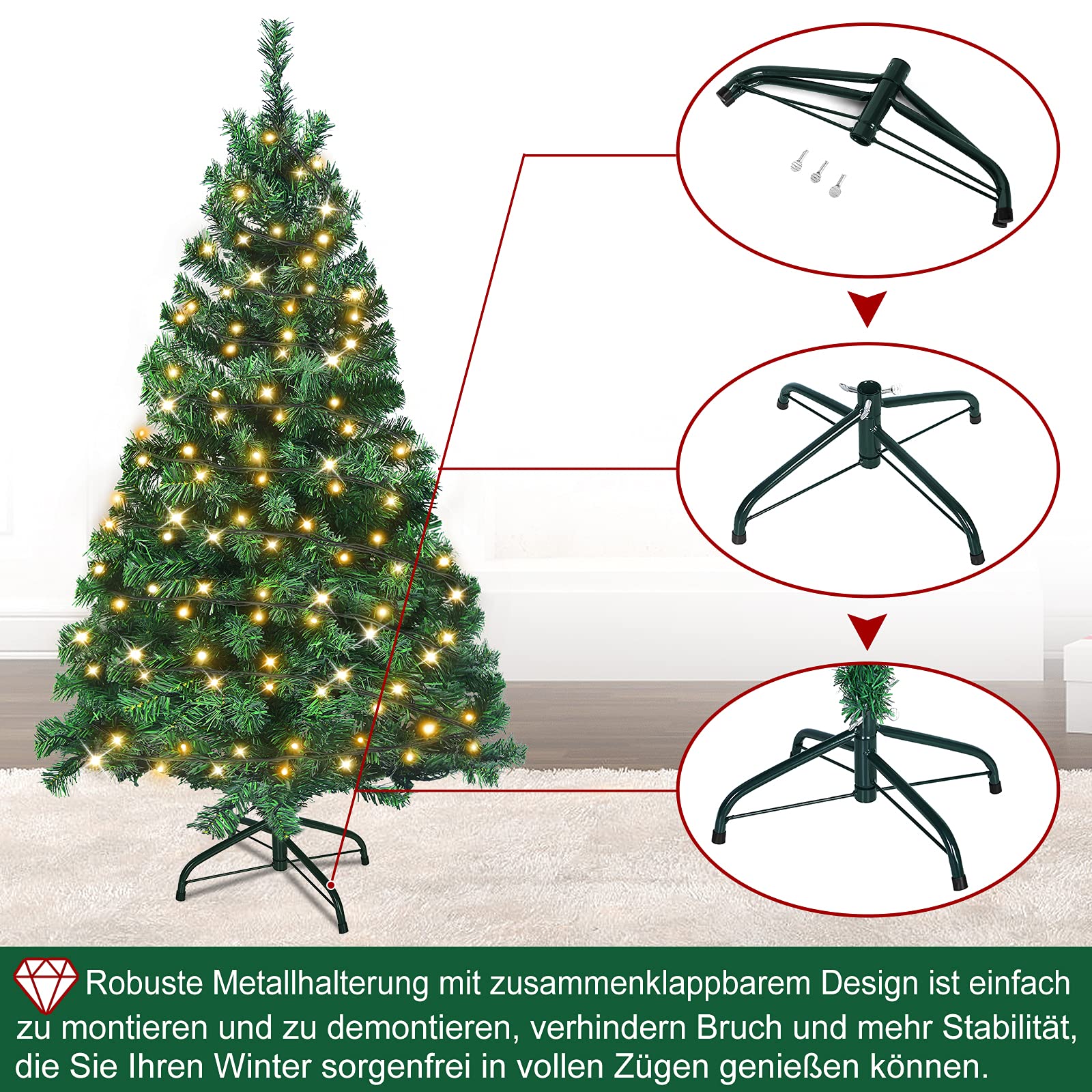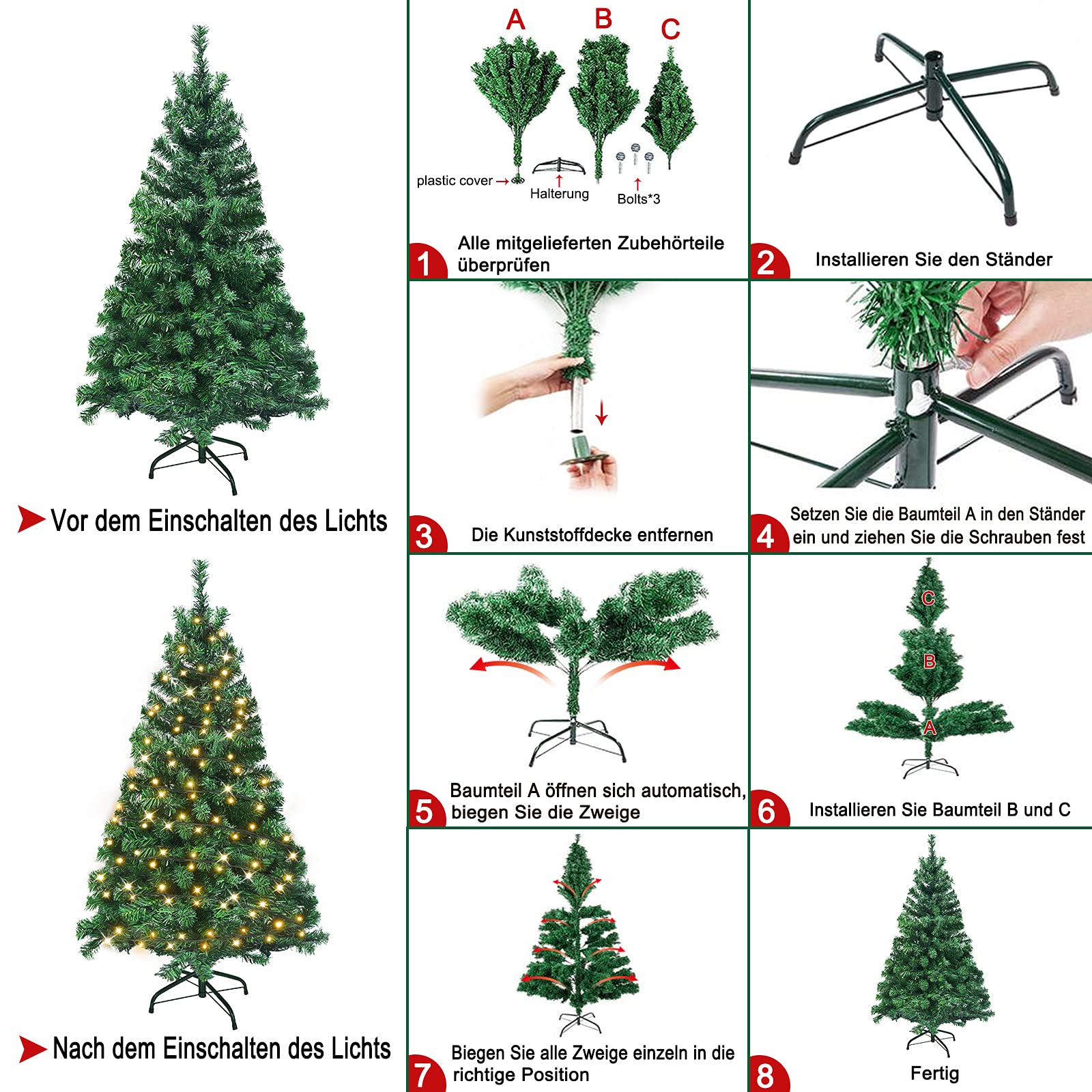 ["🎄Beautiful artificial Christmas tree: The Christmas tree always looks natural, fresh, with dense and rich dark green PVC branches. The branches are very strong. They are evenly spread from bottom to top to achieve the effect as shown in the photo.","🦌Easy setup: The plug-in system allows for easy assembly. Bend and shape each branch individually for optimal tree density!","🎅There are no limits to decoration: It can be decorated like a real Christmas tree to your liking, you can decorate the tree to your heart's content with Christmas decorations like balls, stars, and tinsel. The tree is also equipped with integrated warm white LED lighting.","⛄Practical: The Christmas tree is quickly set up and taken down. Can be used for years, economical and environmentally friendly. Christmas tree suitable for outdoor use, made of flame-retardant PVC with a coated metal stand, sturdy and durable.","🌟Sturdy stand: You can place this illuminated Christmas tree anywhere. Our tree is built on a foldable stand that provides stability and keeps your tree upright throughout the season."]