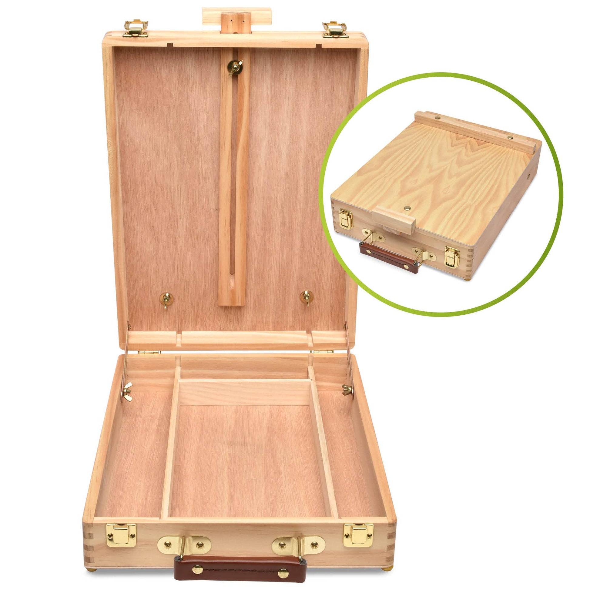["28 TLG MALSET - The 28-piece Artina easel set Florence includes 1 x painting case with easel, 18x 12ml acrylic paint, 6x brushes, 1x palette knife, 1x mixing palette and 1 x stretcher frame (24x30 cm). The painting case with dimensions of approx. 35x27x8 cm (WxDxH) is also a practical table easel.", "TOP QUALITY MIT FÄCHERN - Thanks to the internal compartments, the wooden painting case offers plenty of storage space for your painting supplies. You can sort and store your painting utensils in the 4-compartment divided compartment.", "MIT TRAGERIEMEN - When not in use, the small easel can be securely closed with the 2 latches. For easy and convenient transport, the Artina table easel has a sturdy carrying strap.", "FÜR LEINWAND BIS 55 CM - The painter's case has a painting surface of 27x30 cm. You can use canvases with a picture height of approx. 55 cm on this artist's case. The acrylic easel set is ideal for beginners and hobby painters to immerse themselves in the world of painting.", "18 ACRYLFARBEN - The creative set is perfect for painting on stretcher frames and includes everything you need to get started. With 18x 12ml acrylic paints in different colors and a brush set, there are no limits to your creativity."]