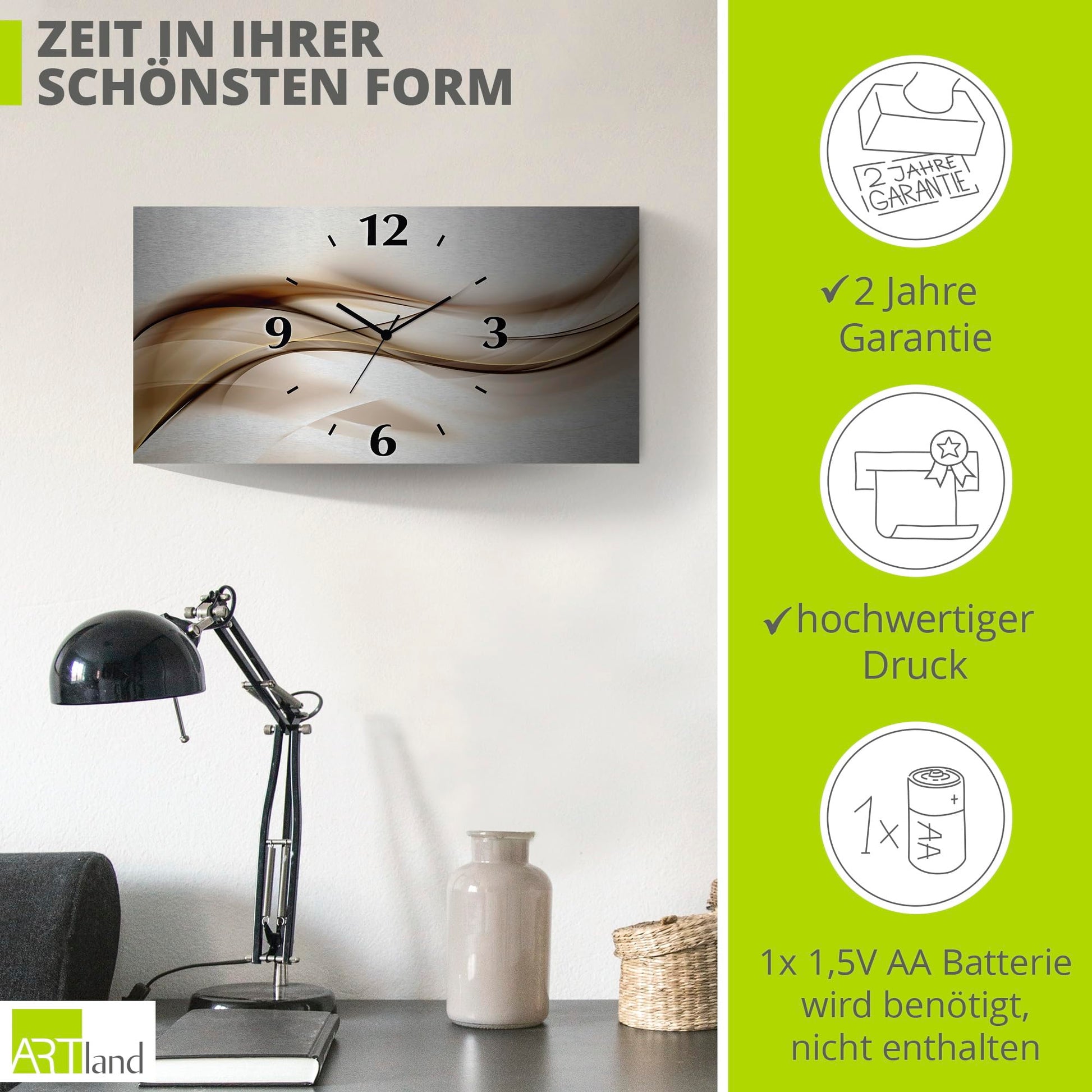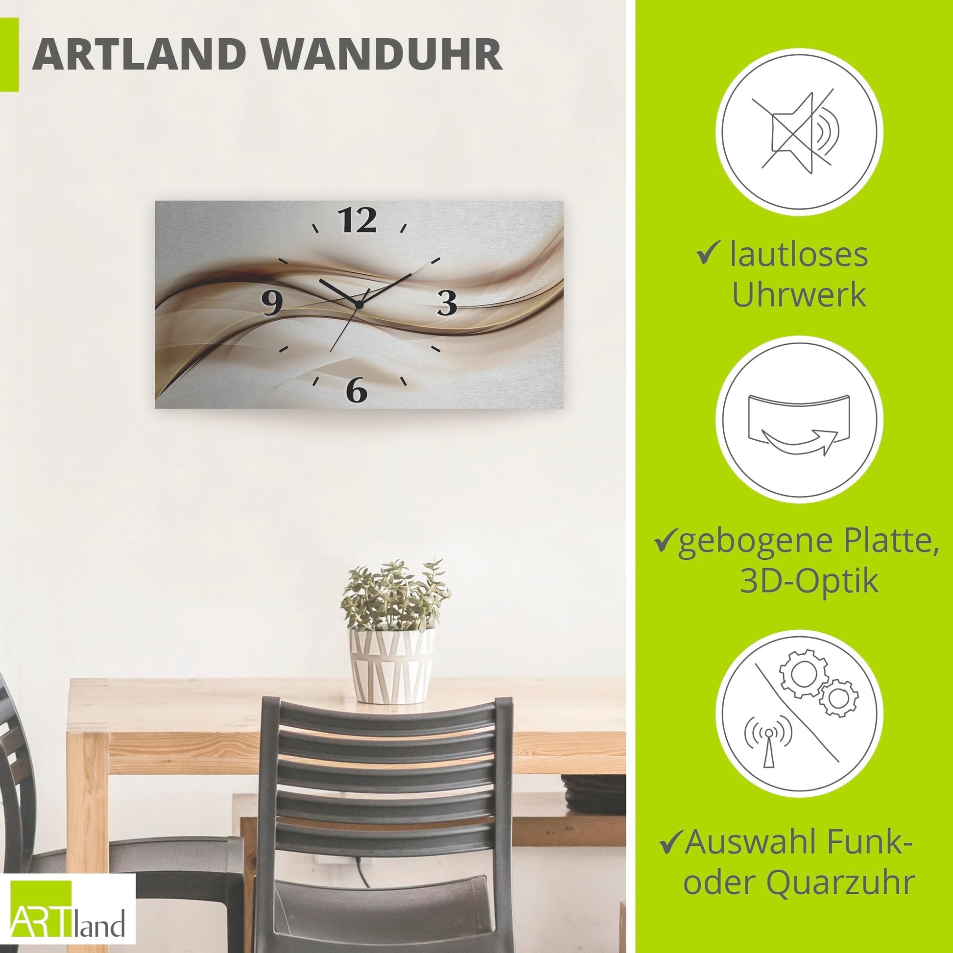 ARTLAND wall decoration wall clock without ticking noises aluminum quartz clock 60x30 cm square silent 3D design wave abstract modern unique T9LI