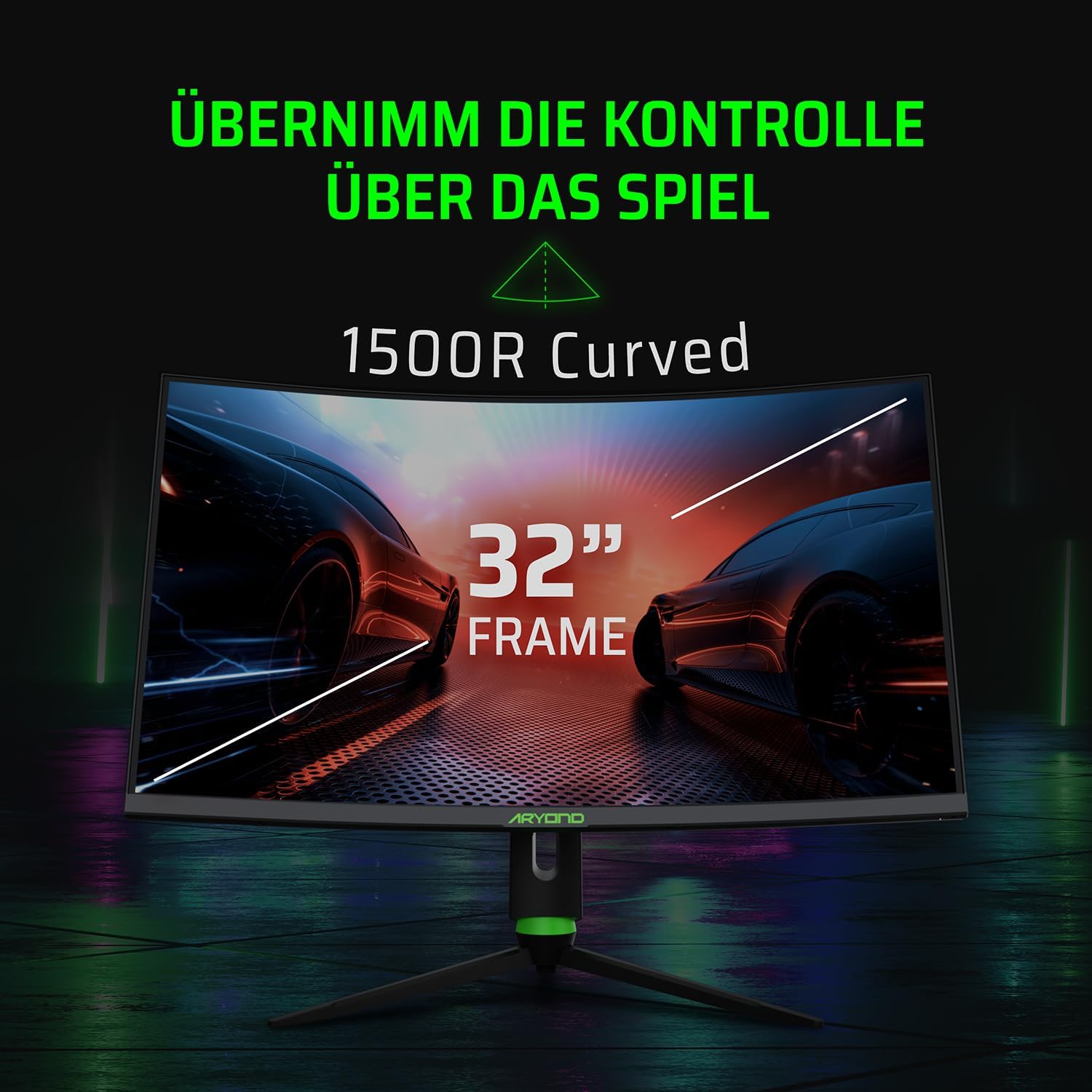Aryond A32 V2 Curved Gaming Monitor, 32 inch (80cm), 180Hz, 1500R, QHD (2560x1440), 1ms, HDR, FreeSync & G-Sync, 122% SRGB, Eye Care, Built-in Speaker, HDMI, Display Port, Height Adjustable.