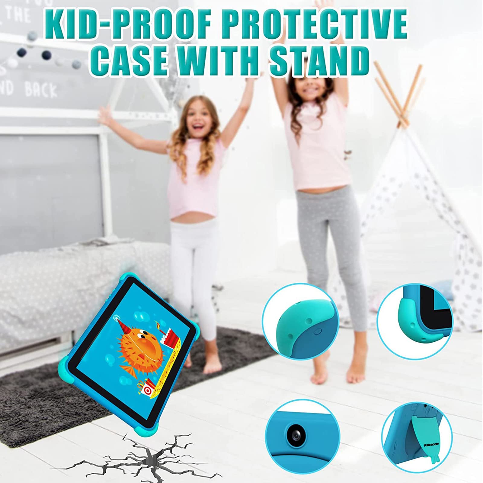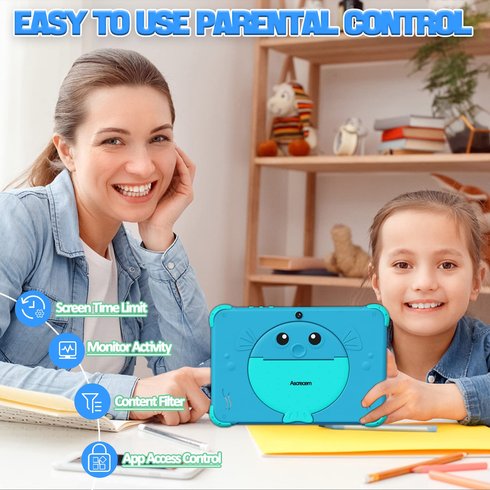 Ascrecem Kids Tablet 10 Inch Android Tablet with WiFi Dual Camera IPS Display 2GB 32GB ROM, Learning Children's Tablet for 3-14 Years Old, Toddler Tablets PC with Kid-Proof Case Kids Software (Blue)