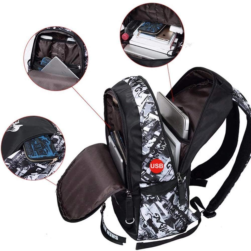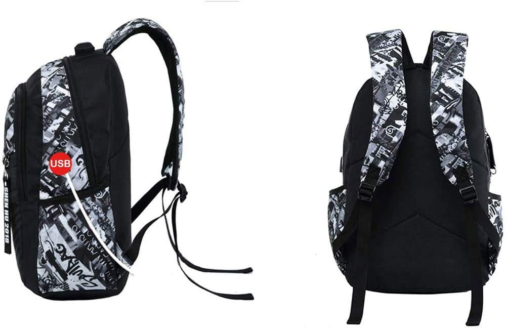 Asge 128-1 Oxford Fabric School Backpack for Boys Schoolbag Print Backpack Teenagers Schoolbag Outdoor Reflective Daypack, Gray, M