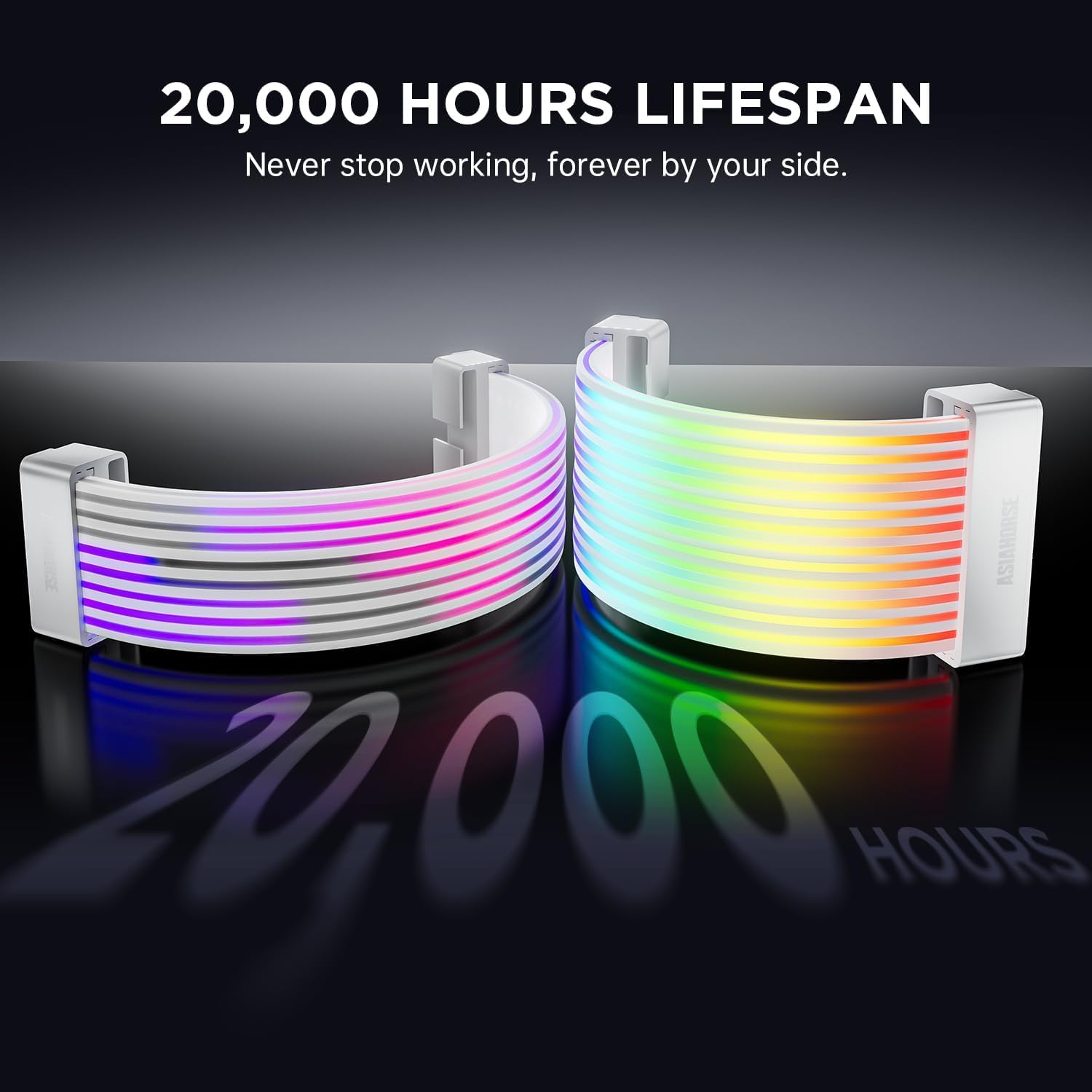 AsiaHorse ARGB PSU Cable Cover Kit, Aurora RGB Power Extension Cable Cover Kit for Motherboard and GPU PC Cables, 5V 3Pin ARGB SYNC, Compatible with 12+4-Pin/8-Pin/24-Pin Cables AURORA-CO-WH