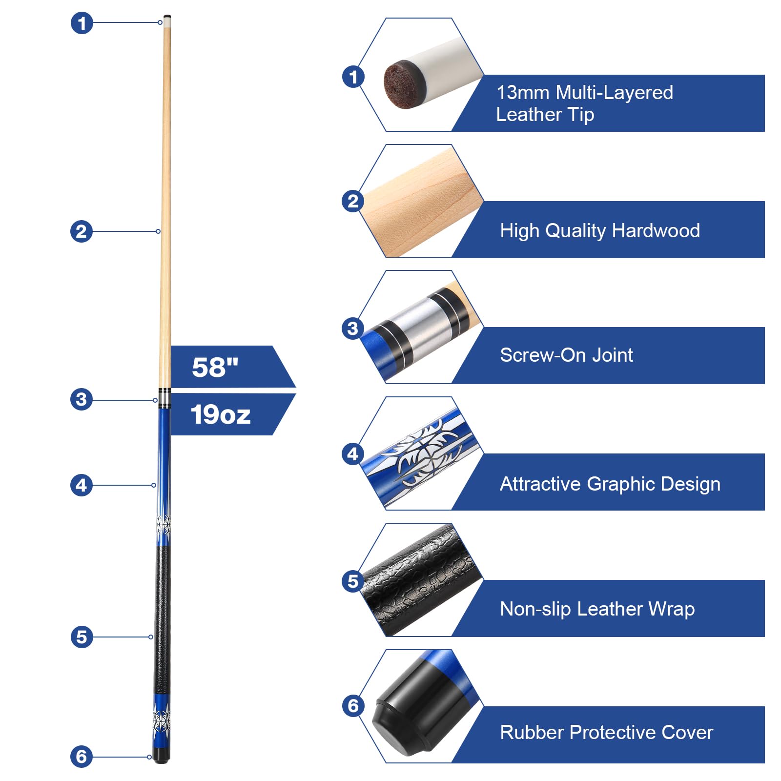 "✔️【High-Quality Wood】Our pool cues are made of high-quality hardwood! Very durable and the shafts are all super straight - no trace of deformation.