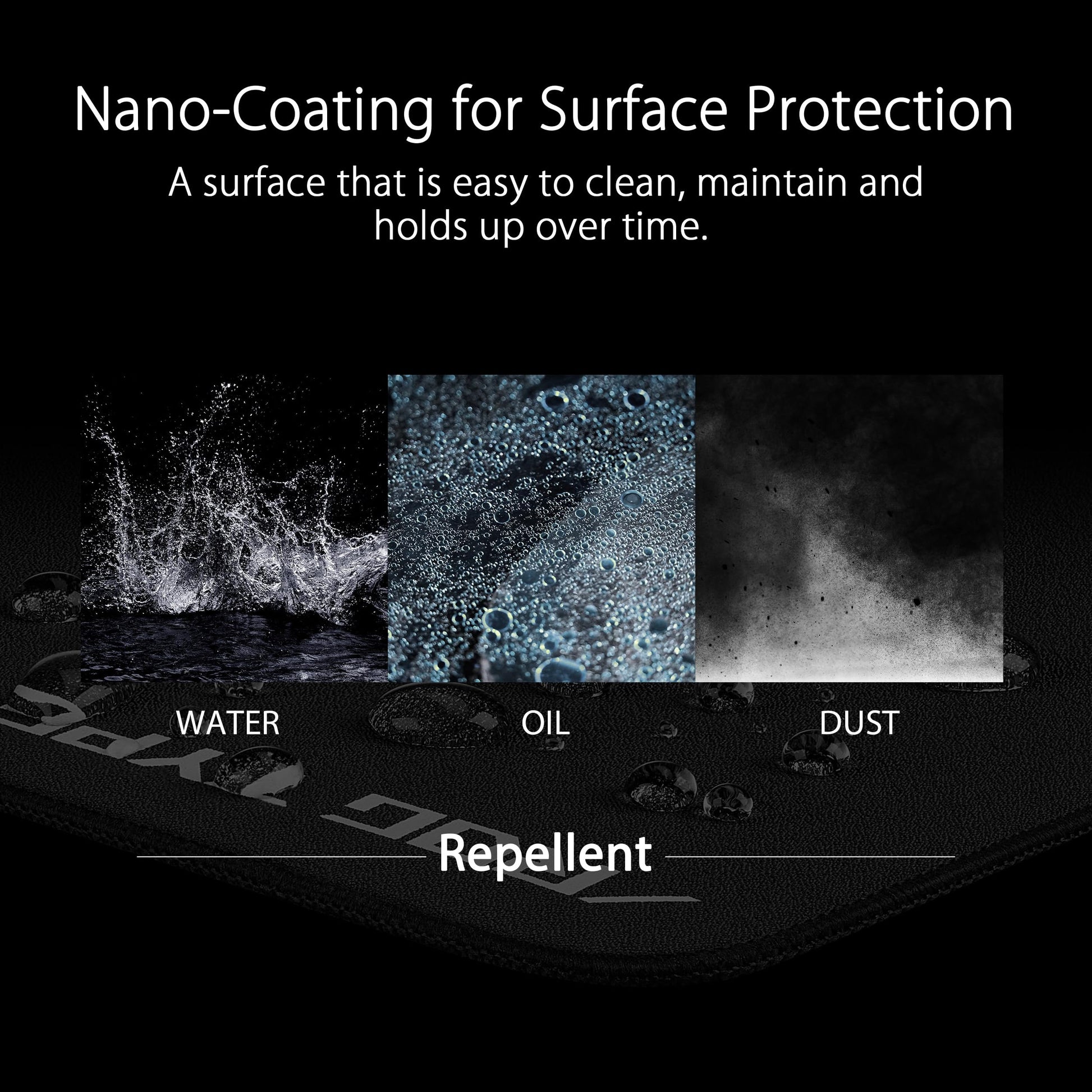 ["High-density PU material that adheres to the desk to provide optimal stability", "3 mm thick soft base for optimal comfort and proper bounce", "The hybrid fabric surface ensures smooth movement and provides the right friction for precise response", "The water-resistant, oil and dust repellent surface is easy to clean and maintain", "Extended to 900 x 400 mm for more space"]
