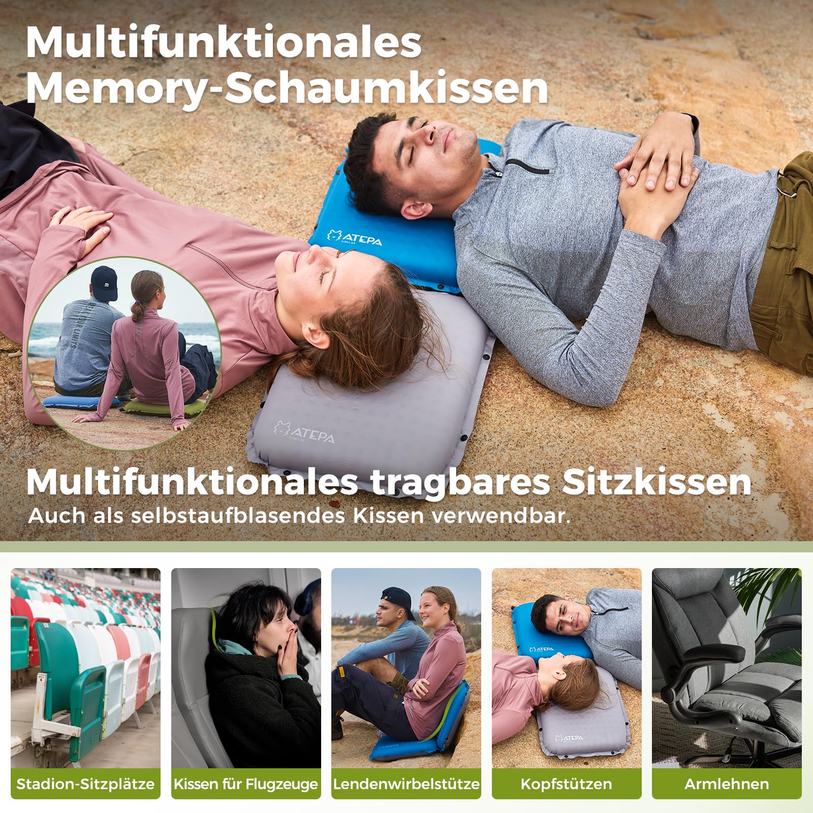 ATEPA Inflatable Outdoor Seat Cushion Chair Ultra-Light Self-Inflating Stadium Seat Cushion Bench Waterproof Seat Pad Outdoor Kayak Seat Cushion Floor, Portable Seat Cushion, Fishing Boat