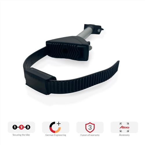 ["Execution - A frame holder for easy securing of the 1st wheel (car direction) of a Strada rear carrier. The additional holder quickly and securely fixes a bike in the correct position.","Technical Data - The compact support arm for Atera Strada Trail 2 as well as Strada E-Bike and E-Bike XL is made of aluminum and plastic. The length measures 36.5 cm.","Scope of Delivery - Frame holder with tension ratchet, spacer tube, fastening, and bracket for support bars. Holders are not removable after initial installation. Without lock, optional available.","Compatibility - The purposeful support bracket is silver-black. Suitable for frame diameters of 25-80 mm. Please check the type label part number of your bike carrier, see table below.","Atera - Automotive expertise since 1963: We manufacture carrier systems that stand for the highest standards, innovation, and aesthetics. Premium quality from Leutkirch for the transport of bikes, skis, and snowboards"]