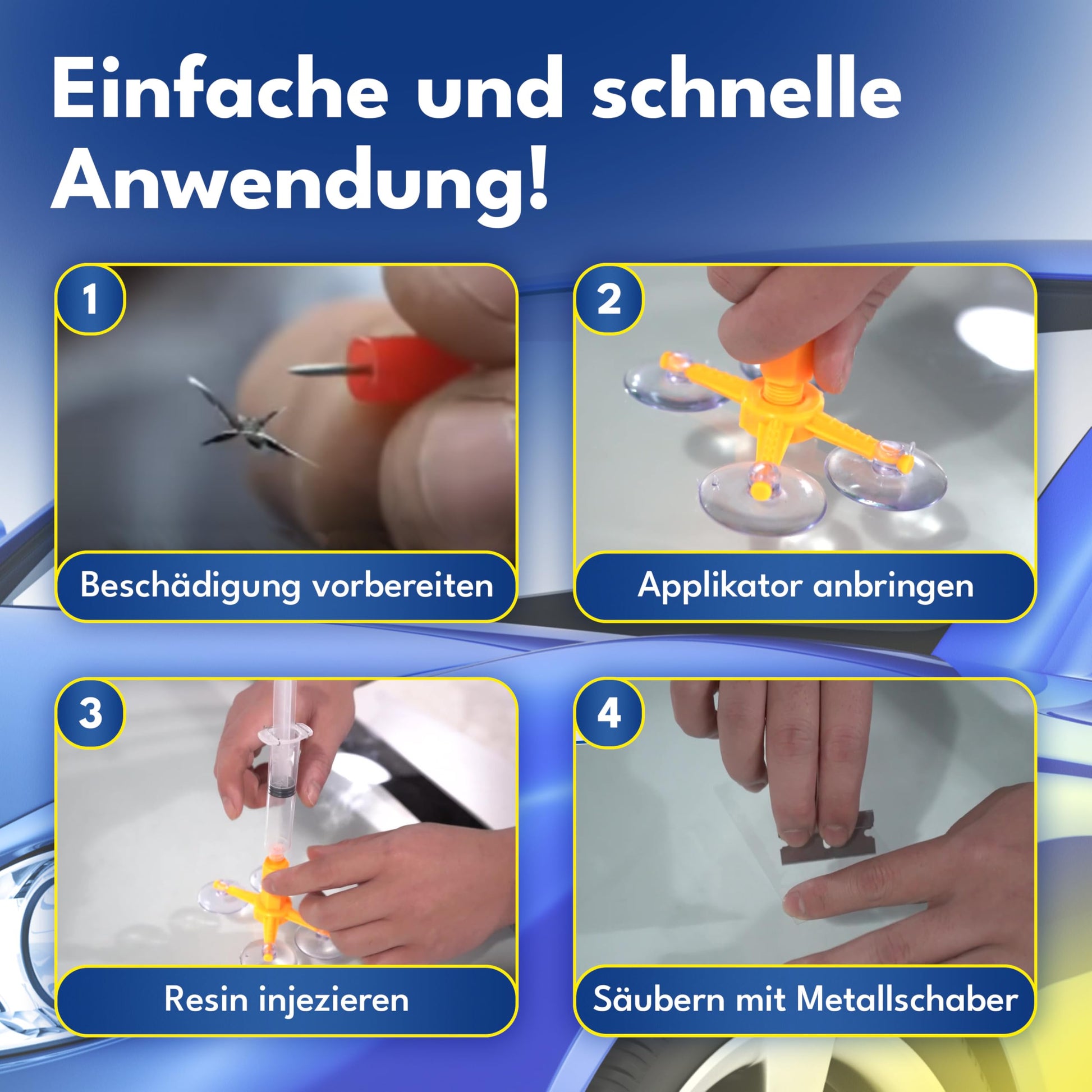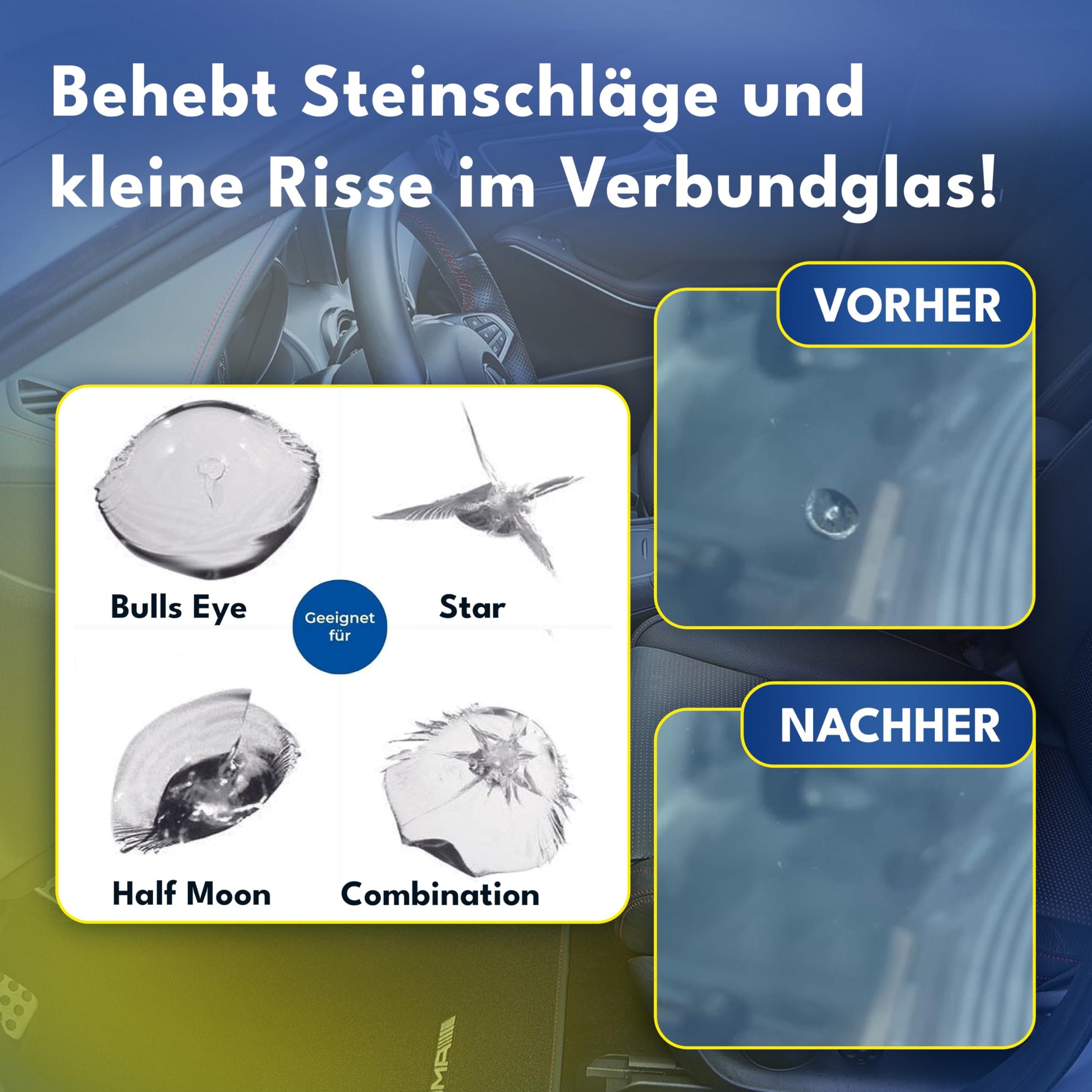 "FAST REPAIR: With the UV lamp included in the car windshield repair kit, the glass can be repaired faster as the glass repair liquid can be directly illuminated & thus cures faster. INSTANT RESULTS: Our Smart Repair windshield repair kit allows you to repair cracks & stone chips within minutes. Perfect for first-time users with easy-to-understand instructions. DURABLE REPAIR: Repairs carried out with our windshield repair kit are permanent & waterproof, restoring the strength & clarity of your windshield. UNIVERSAL APPLICATION: Our windshield repair kit for stone chips is suitable for all types of windshields. The car glass repair kit works on various sizes of stone chips. SAVES TIME & MONEY: Avoid expensive repairs or windshield replacement. Our car windshield repair kit allows you to repair damage independently & affordably."