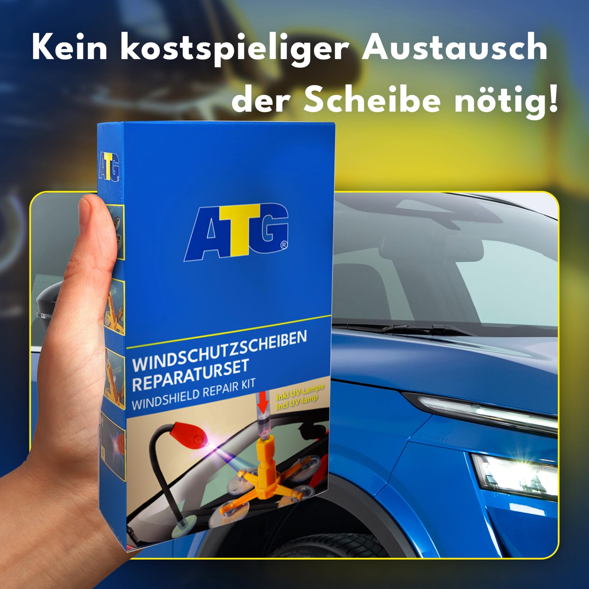 ATG® Practical stone chip repair kit with UV lamp - Universal car glass repair kit - Professional windshield repair kit - Quick, easy - Windshield stone chip repair kit