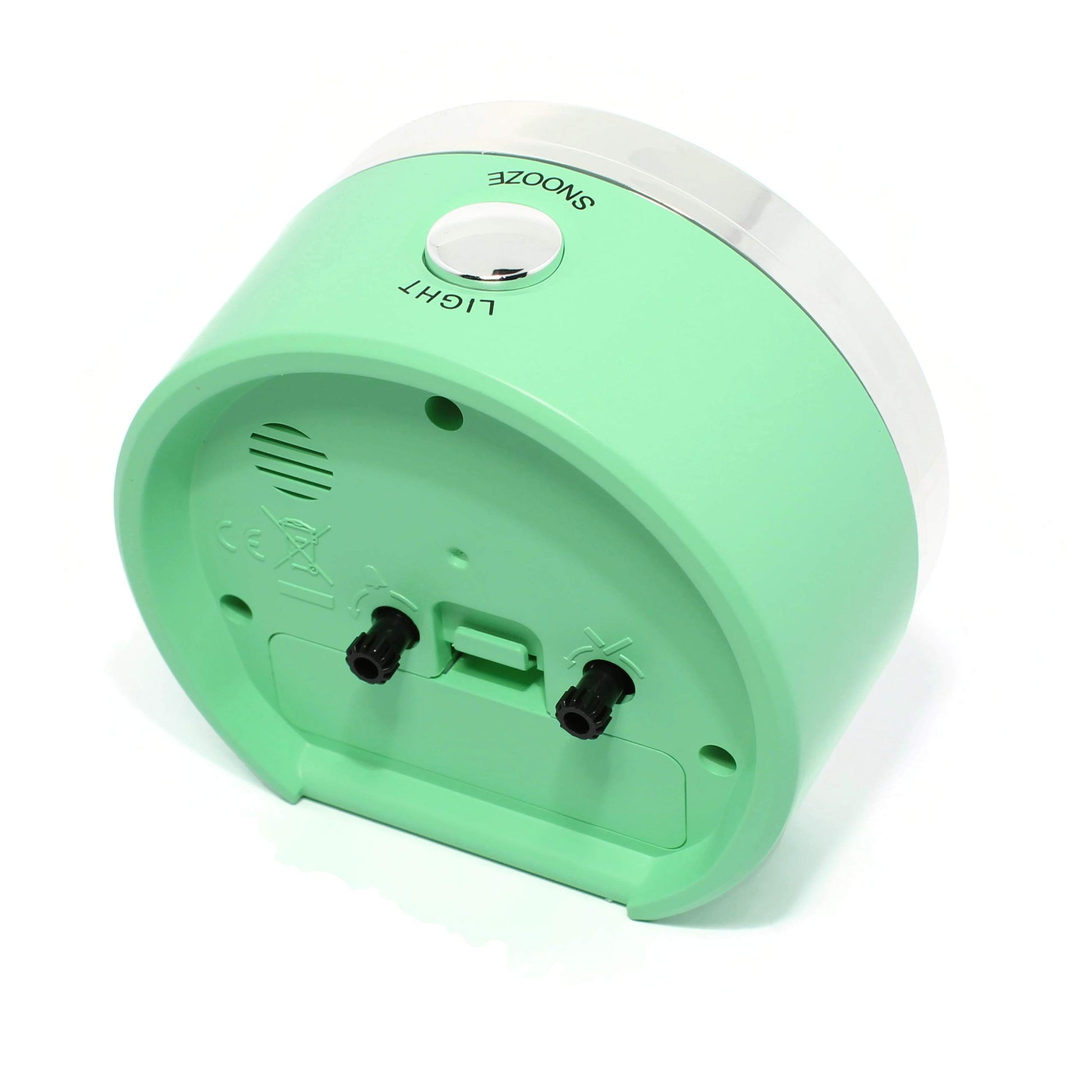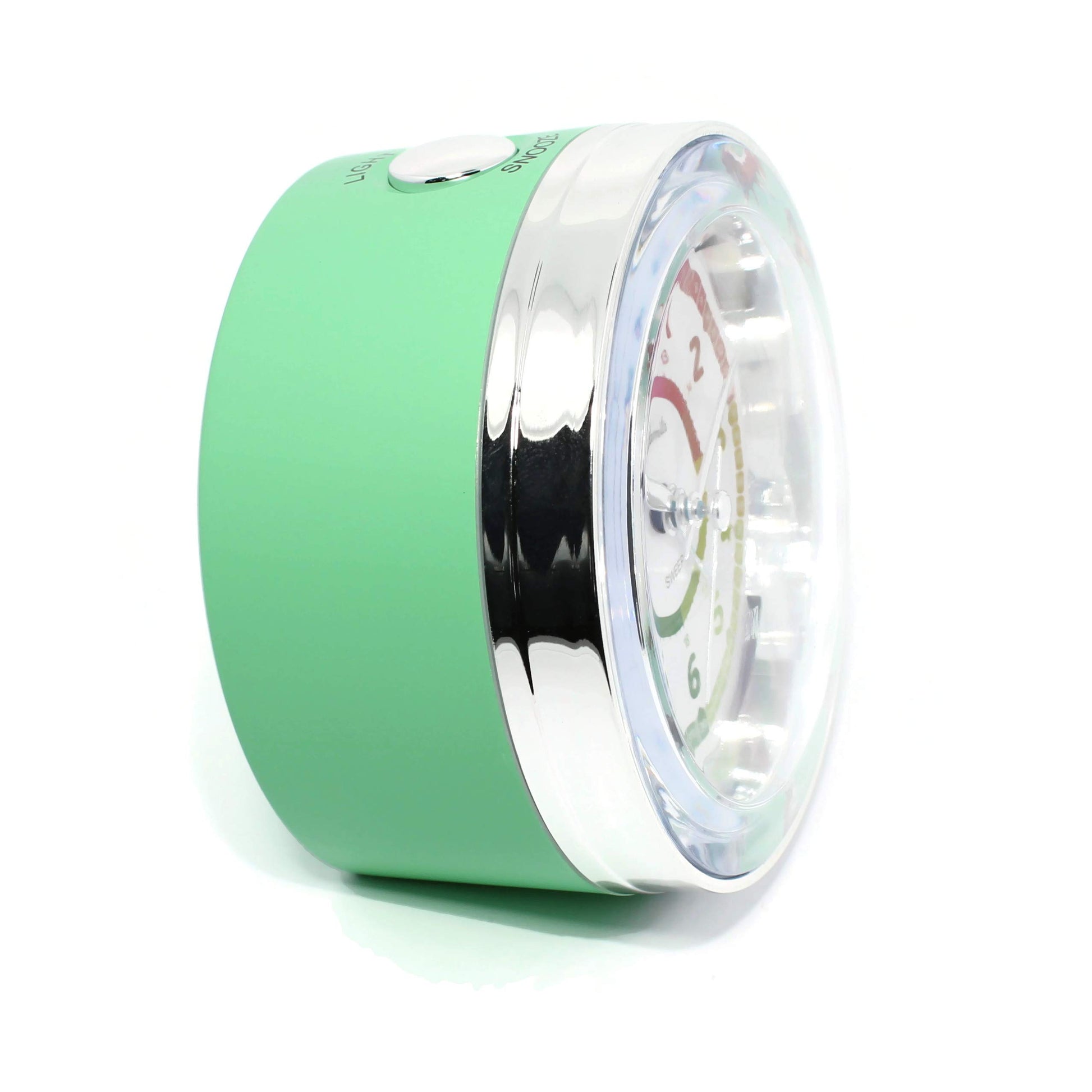["Children's alarm clock with beautiful horse design","Easy to read dial for learning the time","Silent second hand: No ticking","Snooze button (pauses the alarm for 5 minutes), backlit display","Plastic case with stable base - Dimensions: Ø 4 inches"]