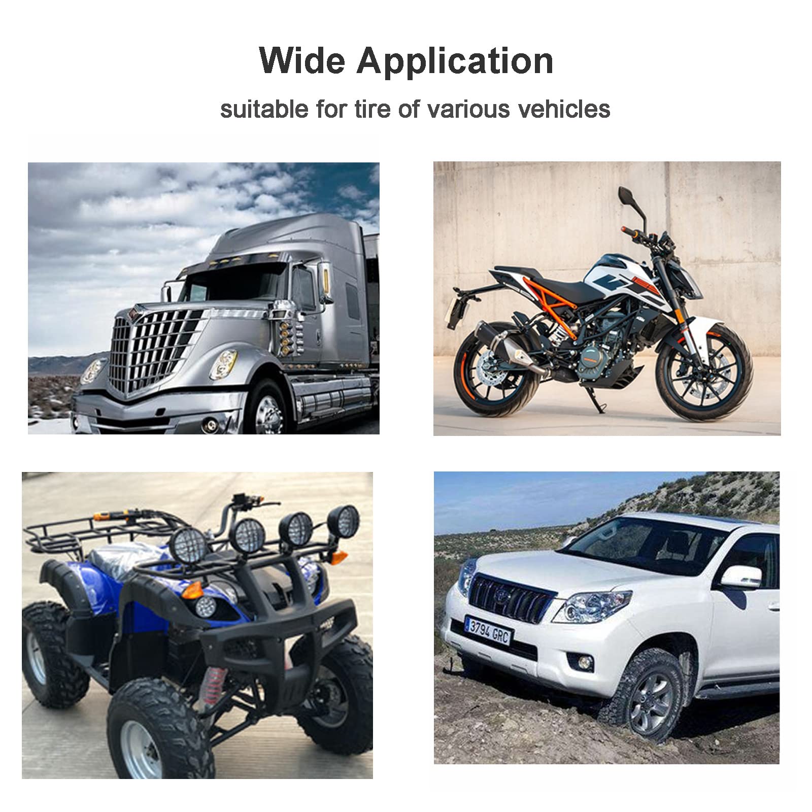 "4. Wide range of applications: 200 PSI range of the electronic tire pressure gauge can measure vehicles with various Schrader valve nozzles, and the measurements are accurate and easy to read; suitable for cars, motorcycles, bicycles, trucks, SUVs, RVs, ATVs, vans, etc. You can drive safely.",