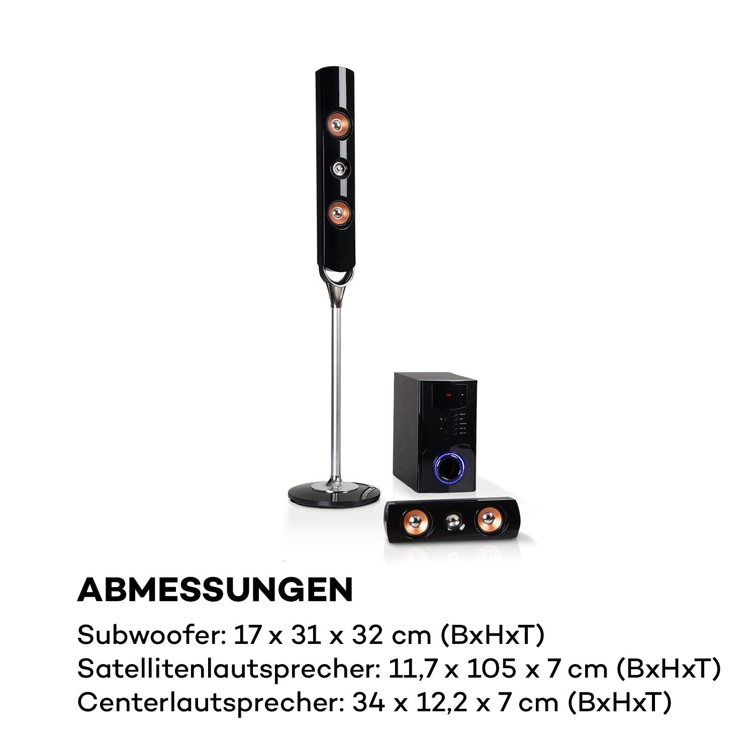 "MIDDLE OF THE SOUND: With the auna Areal Nobility home theater sound system, you are in the middle of the cinema and experience movies, music, or video games even more intensively than ever before! Real cinema feeling in the living room: With the system, you are right in the middle of the sound action!