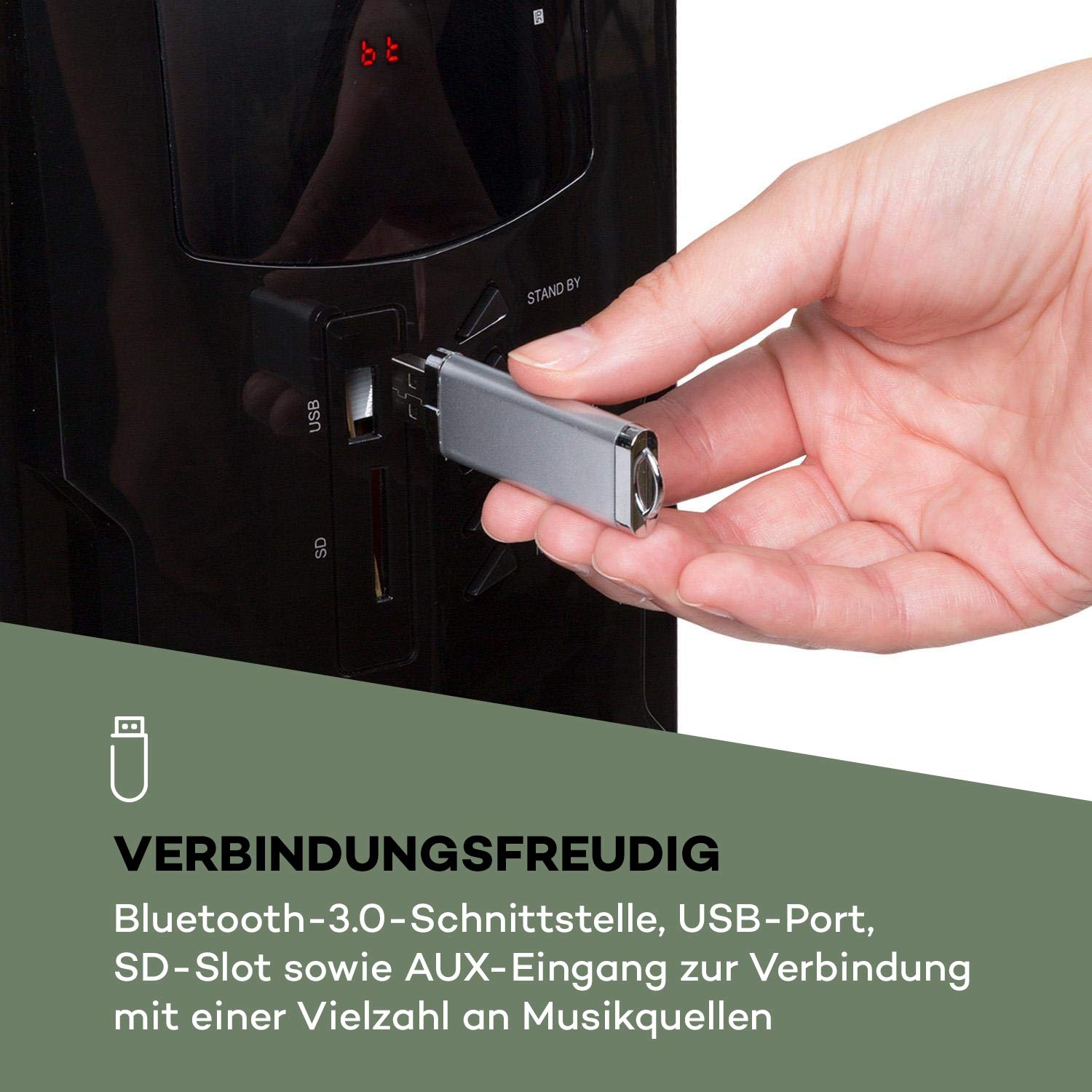 LIMITLESS: The home theater system speaker 5.1 communicates with portable MP3 devices such as USB sticks and SD memory cards via the USB port and SD card reader, while media from a laptop, CD player, or MP3 player can be played via the rear AUX input.