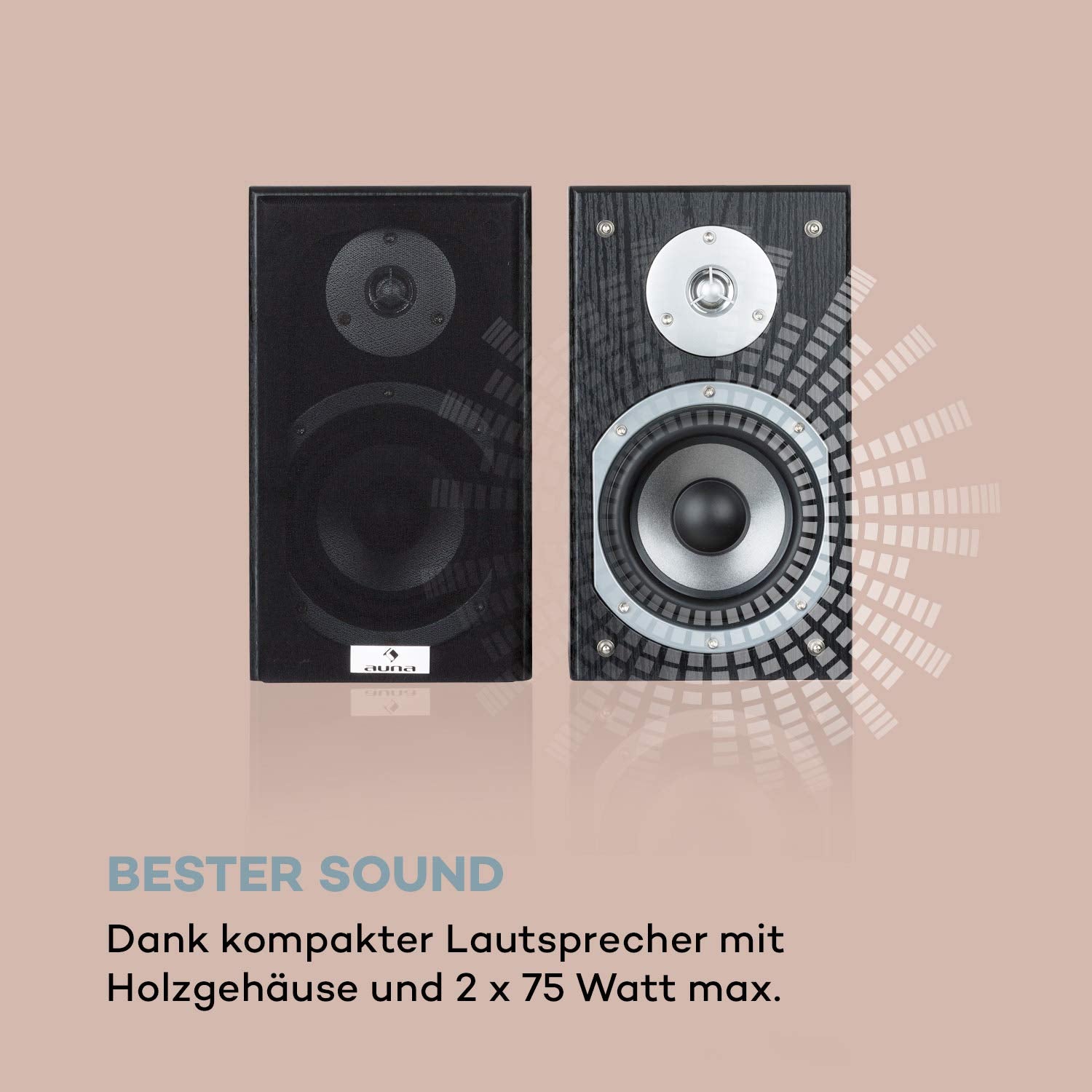 SOUND QUALITY: An amplifier and two speakers with a power of 2 x 75 W max. ensure a strong sound image with stable sound quality. The Bluetooth function reliably streams audio files from a smartphone, tablet, or laptop.