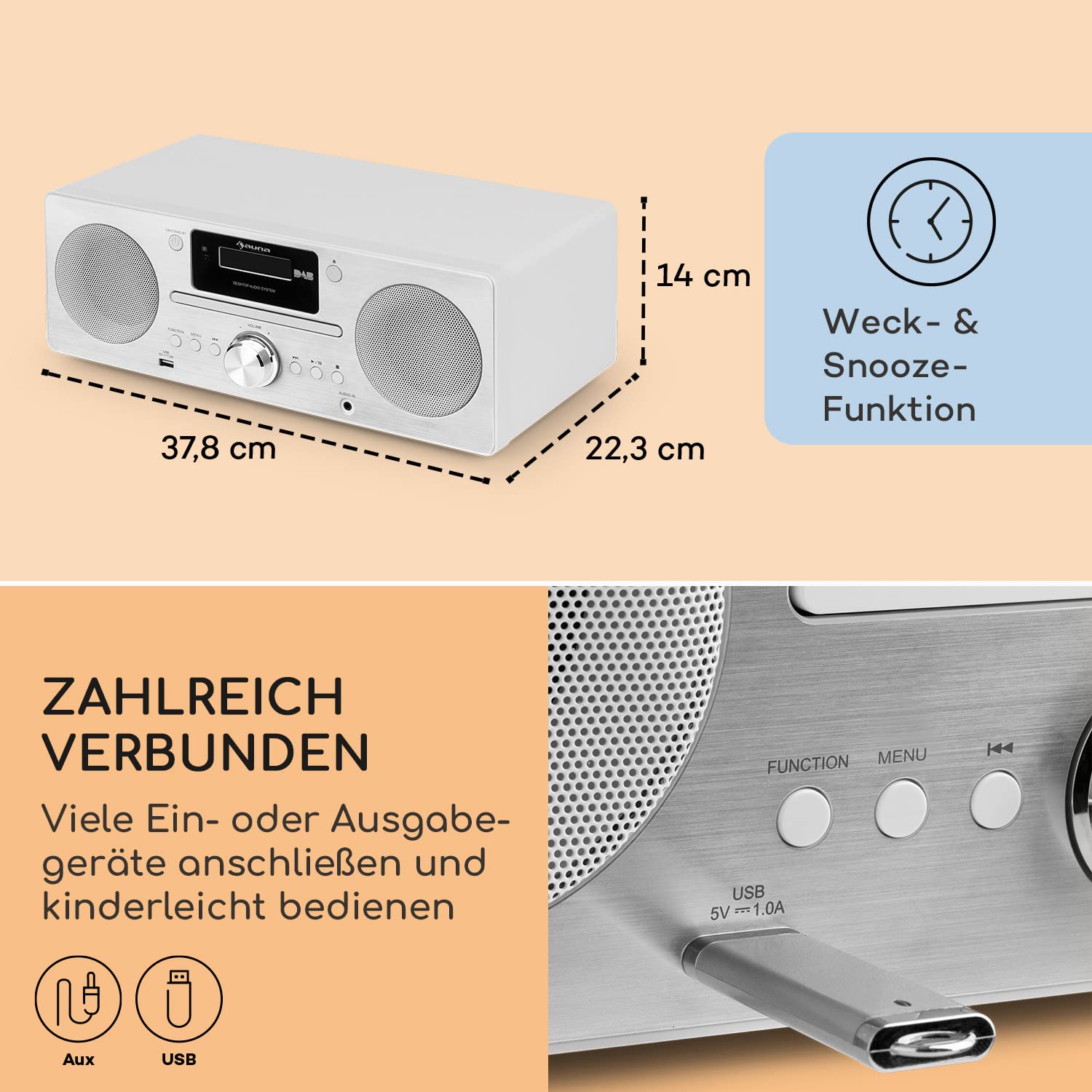 "WITH STREAMING FUNCTION: It's not just a DAB radio with a CD player, but also a Bluetooth speaker that allows streaming from your smartphone or tablet. This radio with stereo speakers provides fantastic sound!"