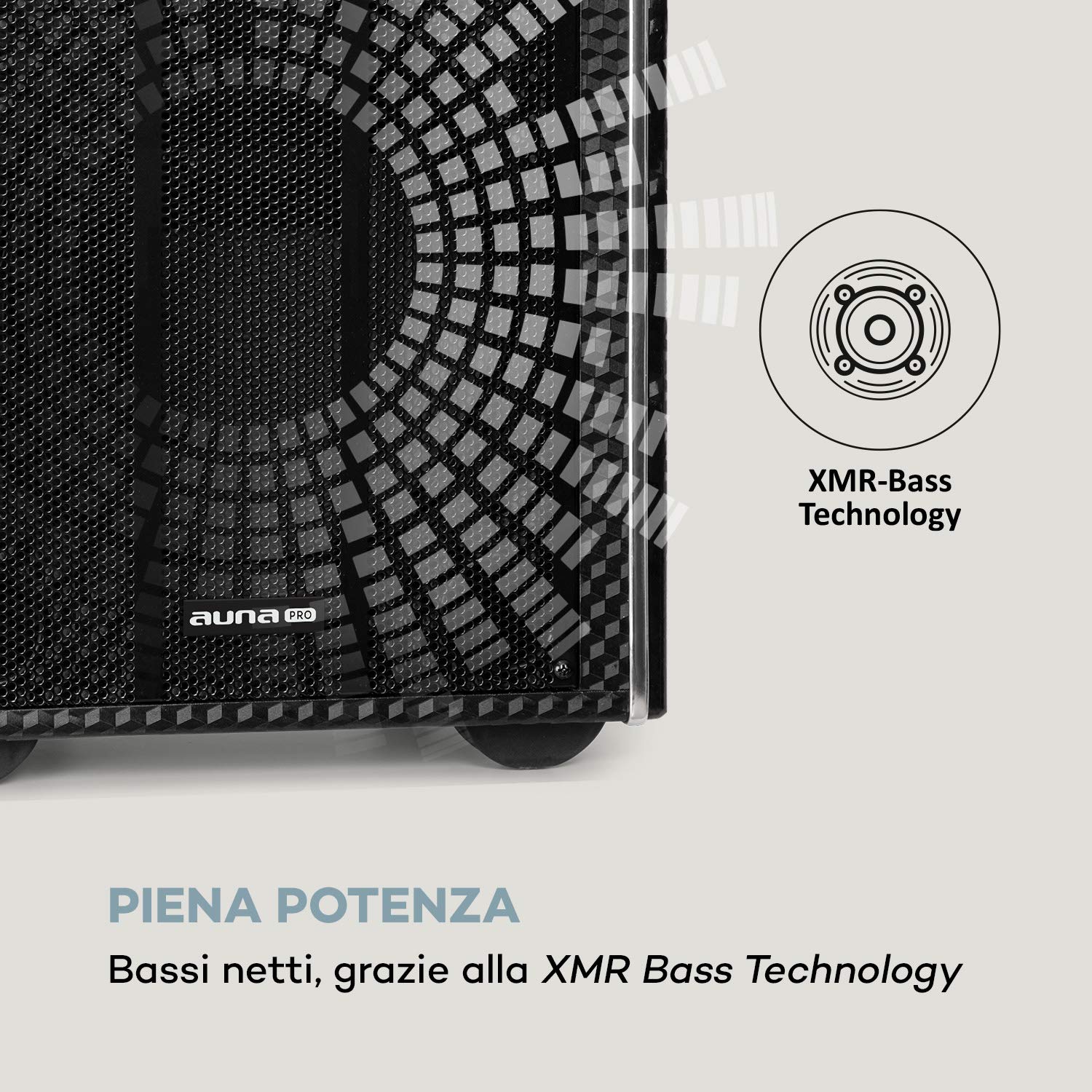 auna Pro DisGo Box DVD - Mobile PA system with built-in DVD player, 300 W max., 2 x 10 (25.5 cm) subwoofers, Bluetooth, USB, SD slot, wireless UHF microphone, battery, remote control, black.