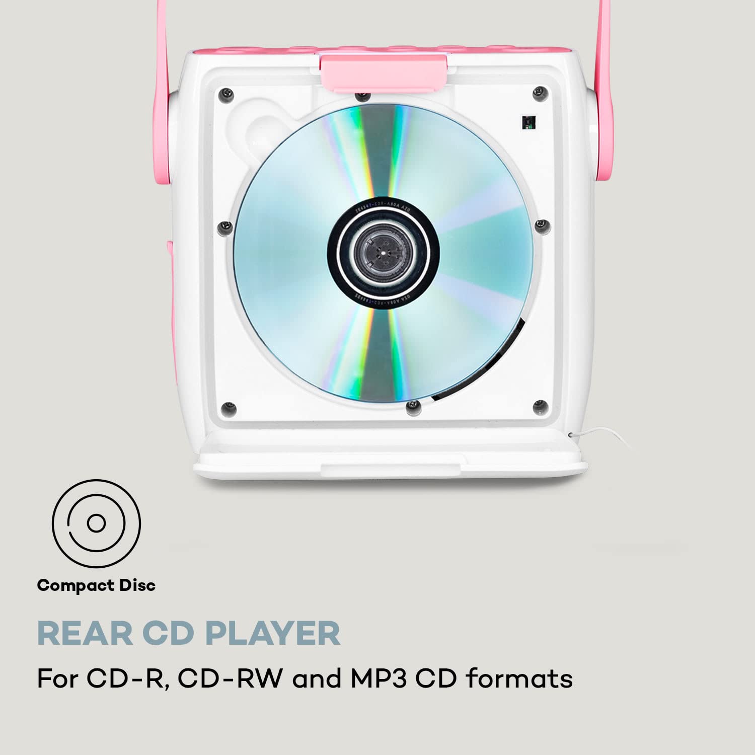 "CD-PLAYER: The auna Splash Radio DAB Plus features a classic CD player with a retractable CD slot. The drive of the DAB radio Bluetooth plays not only regular audio CDs, but also discs in the CD-R, RW, and MP3 formats.",