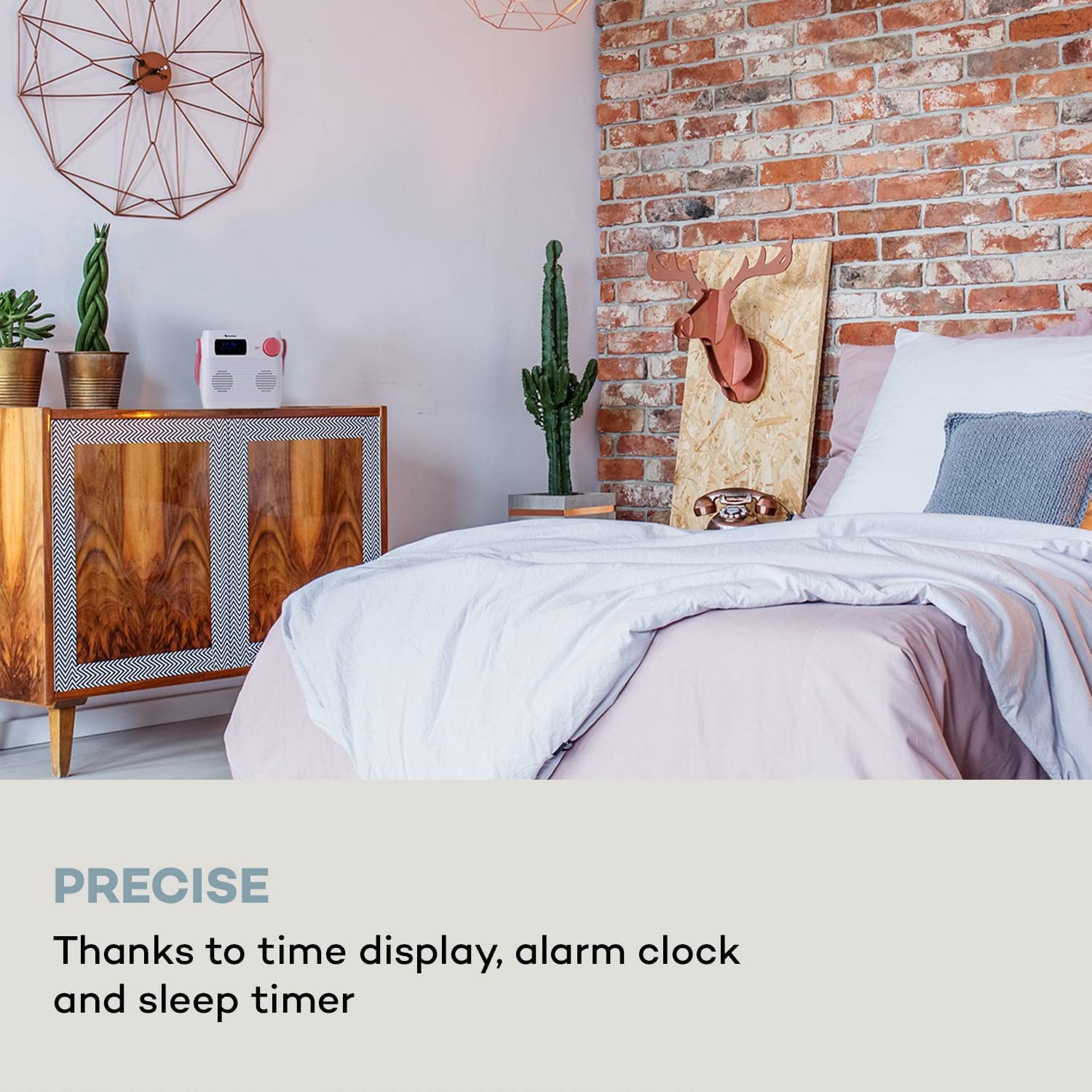 Auna Splash Shower Radio, DAB Radio, BT DAB+/FM IPX4, DAB+ Radio with USB port, headphone jack USB-C battery, digital radio, white-pink