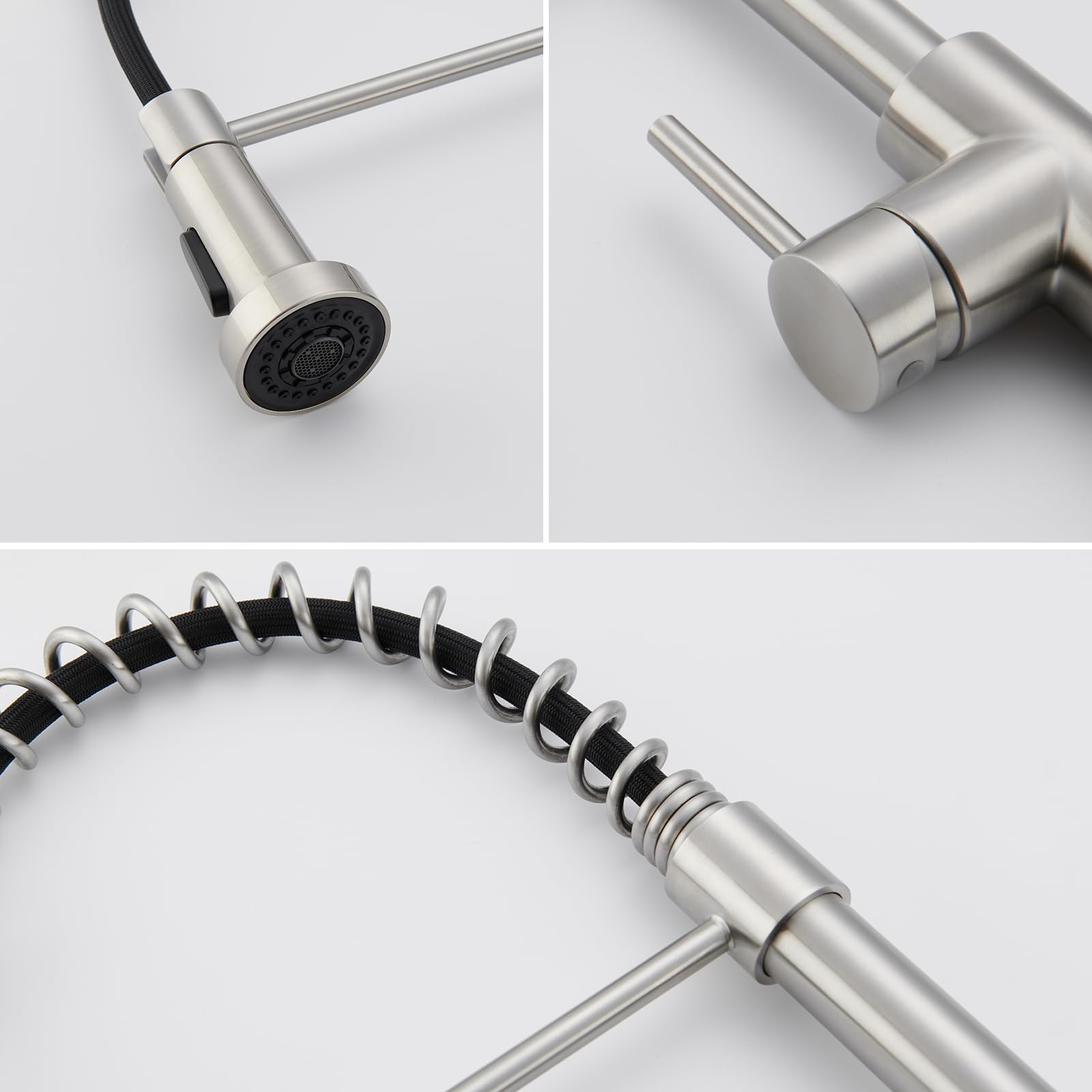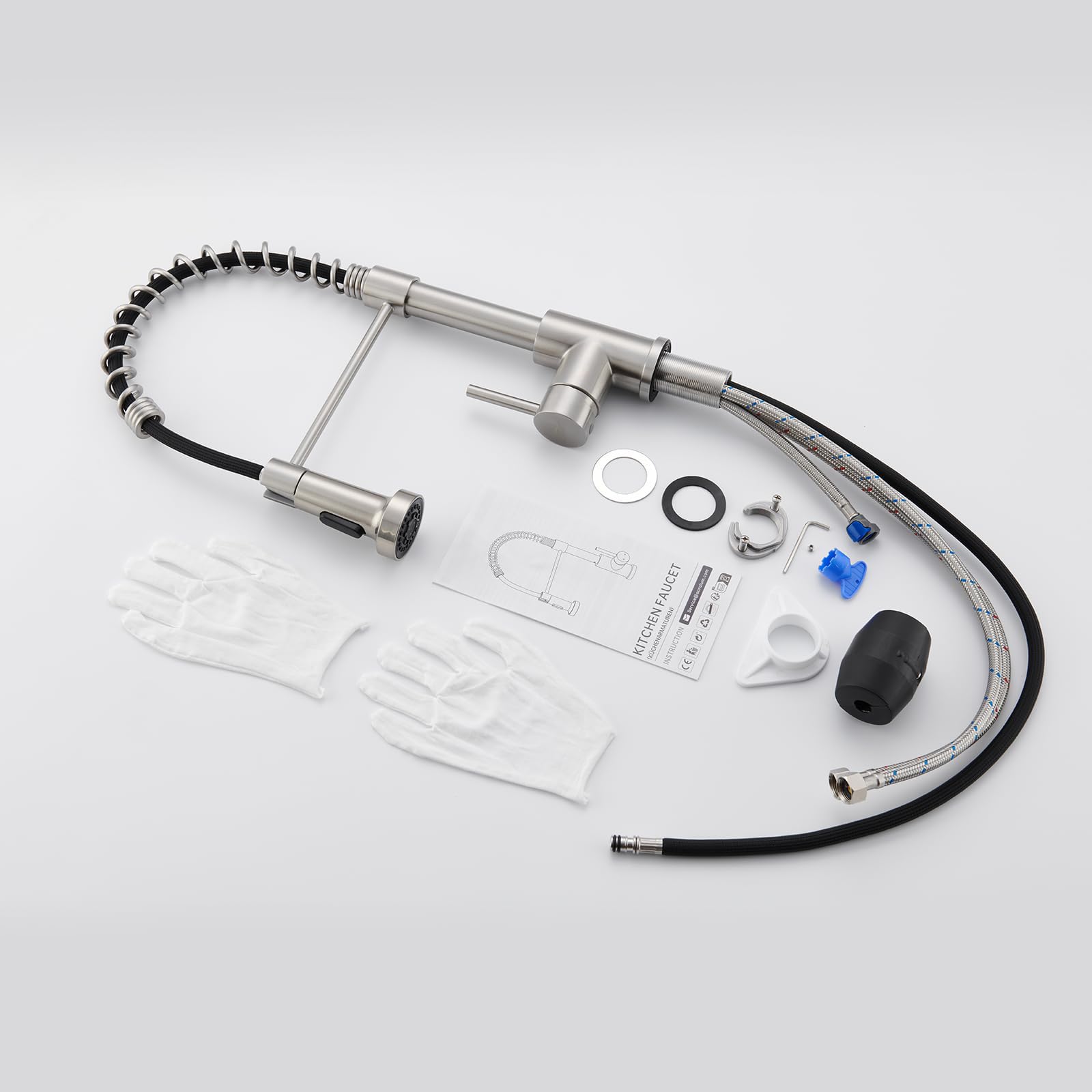 HEALTHY CHOICE: The kitchen faucet is made of 100% lead-free stainless steel 304. It also features a KTW-certified cartridge and hoses that meet safety standards for drinking water and provide you with a healthier water source.