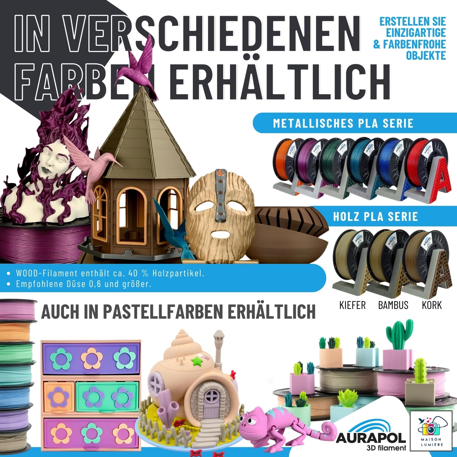 AURAPOL Filament 1.75 PLA, 3D printer filament, PLA filament with precision 1.75 mm +/- 0.02 mm, Premium 3D filament compatible with most FDM (FFF) 3D printers and 3D pens.
