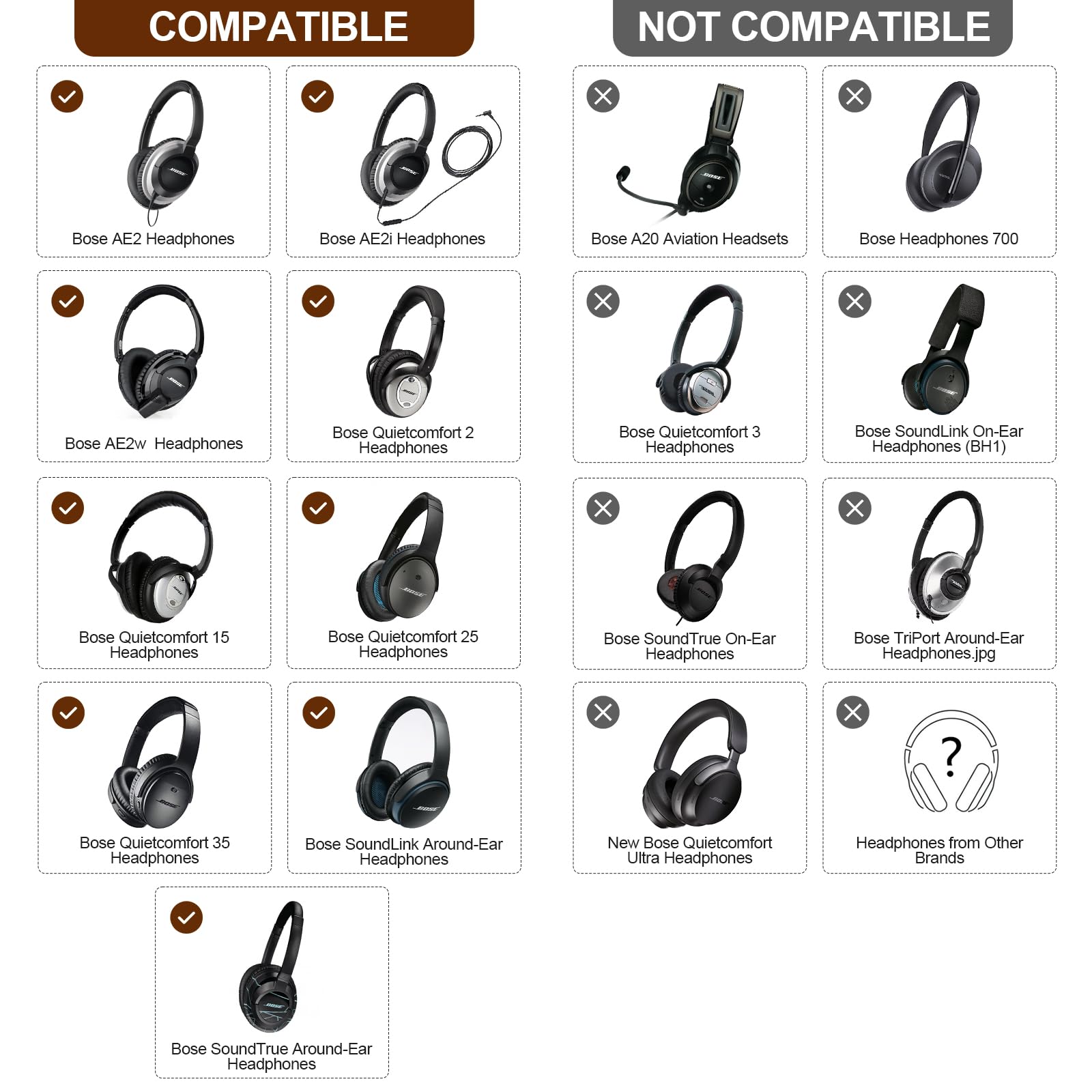 Aurivor genuine leather ear pads for Bose QuietComfort QC-35 QC-35-II QC-25 QC-15 QC-2 headphones, lambskin replacement ear cushions for Ae2/Ae2i/Ae2W SoundLink SoundTrue over-ear headsets.