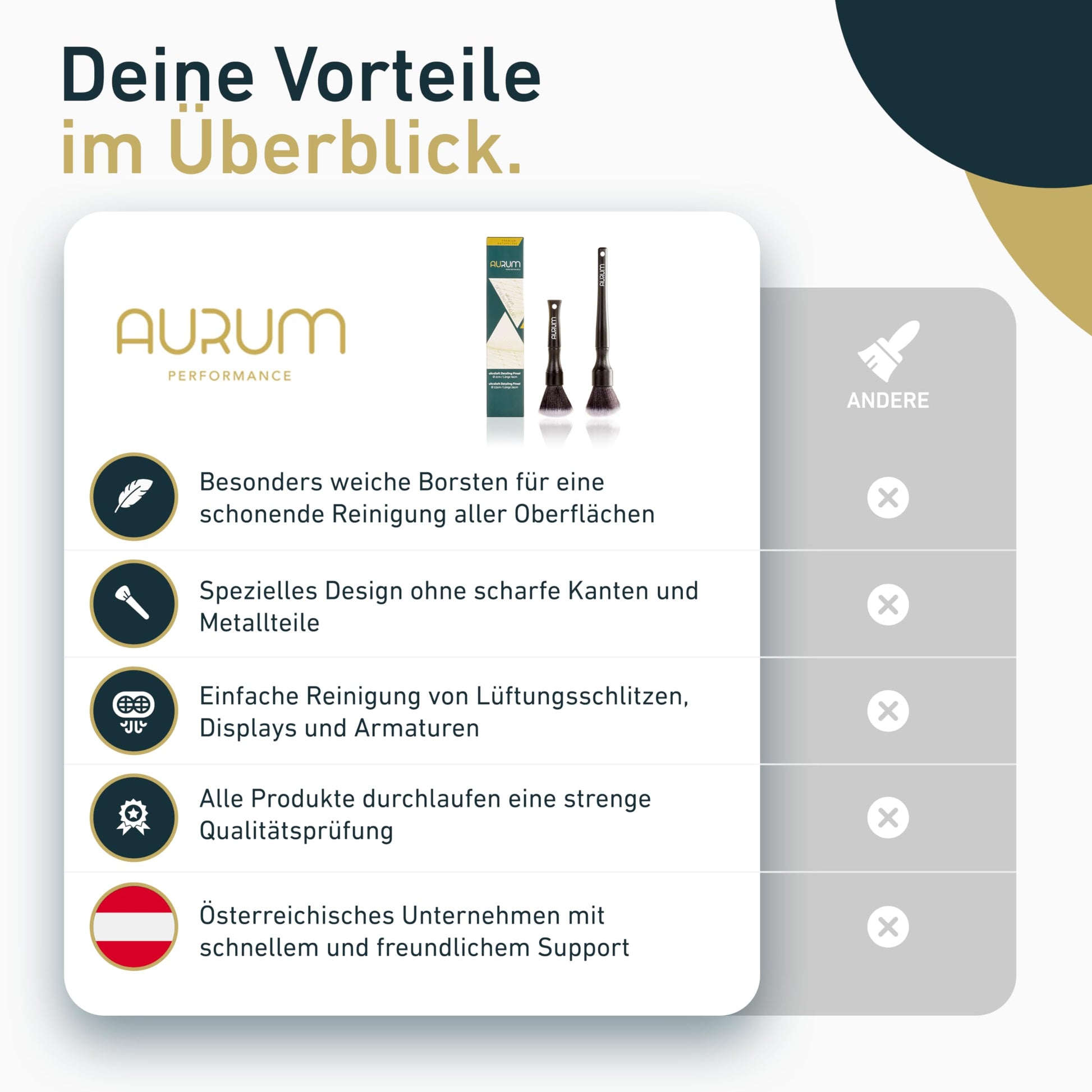 Aurum-Performance® Detailing Brush Set for Cars 2 Pack ultra soft - Car cleaning brush for professional car care inside & out - Car Detail Brush, interior cleaning, car wash brush Ultrasoft