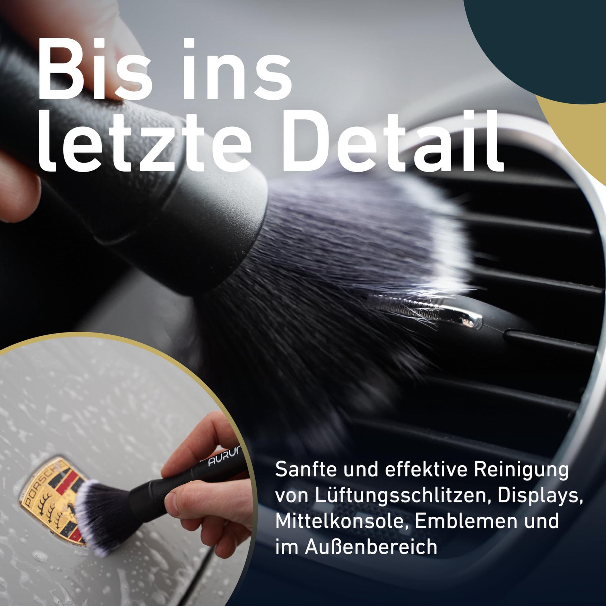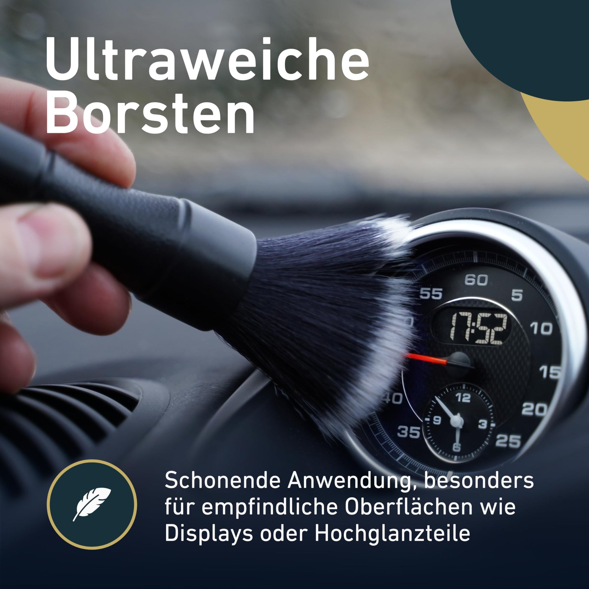 ["ULTRA-SOFT & GENTLE - Protect sensitive surfaces like high gloss paints, displays, or air vents from scratches - thanks to ultra-soft, high-quality bristles for a safe and thorough car cleaning.", "CARE FOR INSIDE & OUTSIDE - Perfect for dashboard, air vents, leather seats, emblems, rims, or the engine compartment - The car brush set tackles every task and ensures a well-groomed vehicle.", "2-PIECE SET FOR EVERY DETAIL - Whether it's fine cracks in the interior or large emblems outside: With the small and large detailing brush, you are well equipped for every cleaning task - precise, safe, and time-saving.", "PROFESSIONAL QUALITY - Achieve results like a professional vehicle detailer! The metal-free design and textured grip not only ensure a safe application but also provide you with exceptional handling.", "TESTED AND LOVED - The car dust brushes are a must-have for top-level car care. Thousands of satisfied customers speak for themselves. Even professionals swear by them. Don't hesitate - get this quality product today!"]