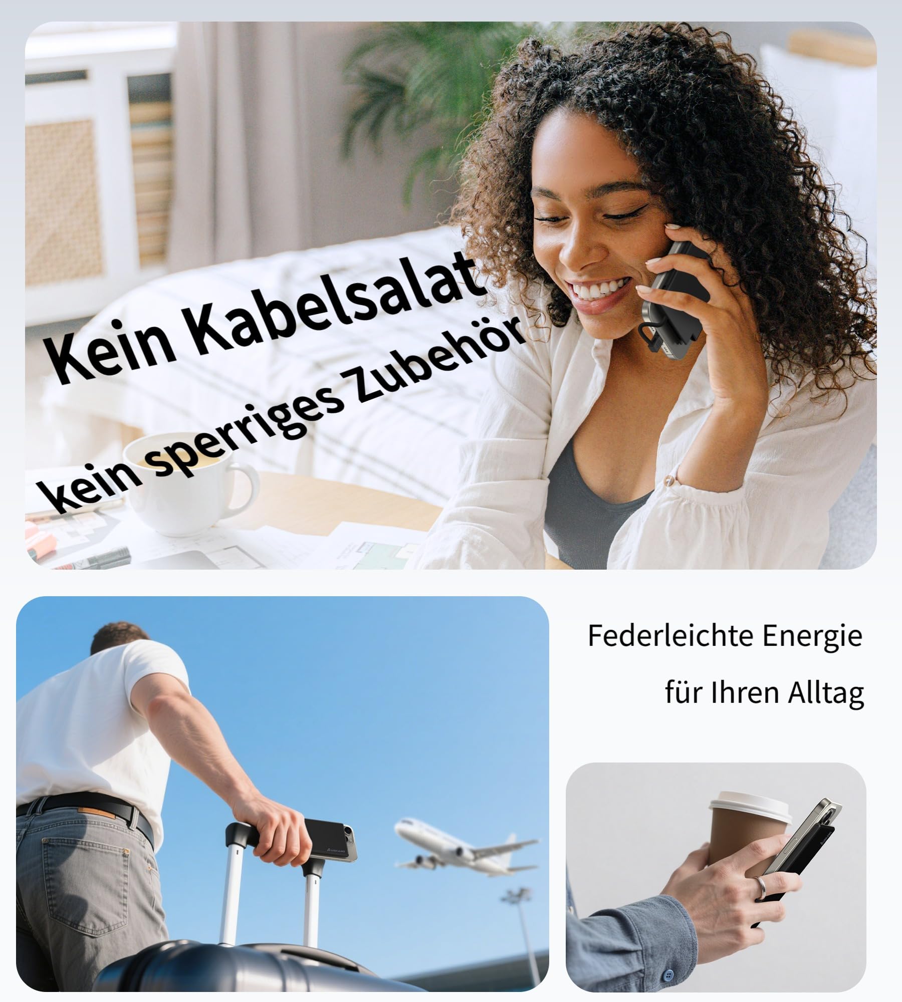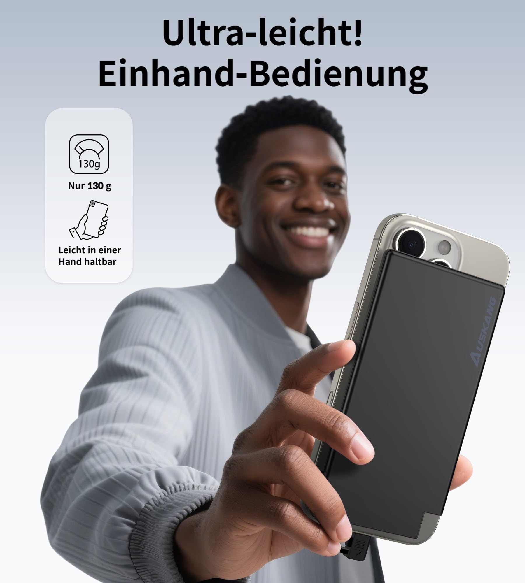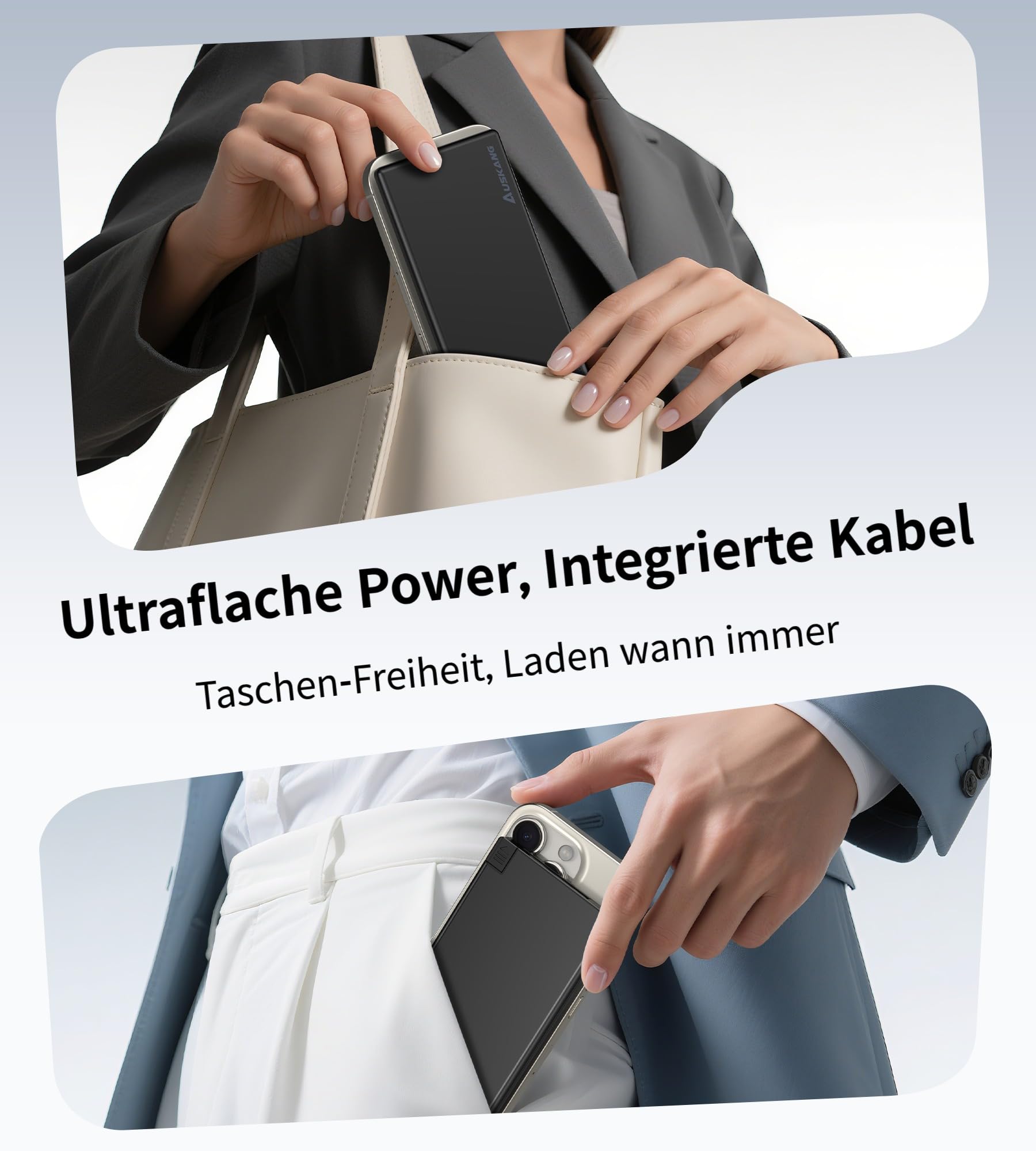 Auskang Powerbank USB C with Cable 0.68cm Ultra Slim Portable Charger Ultra-thin and lightweight External Battery, Compatible with iPhone, Samsung, Xiaomi, etc.- Black