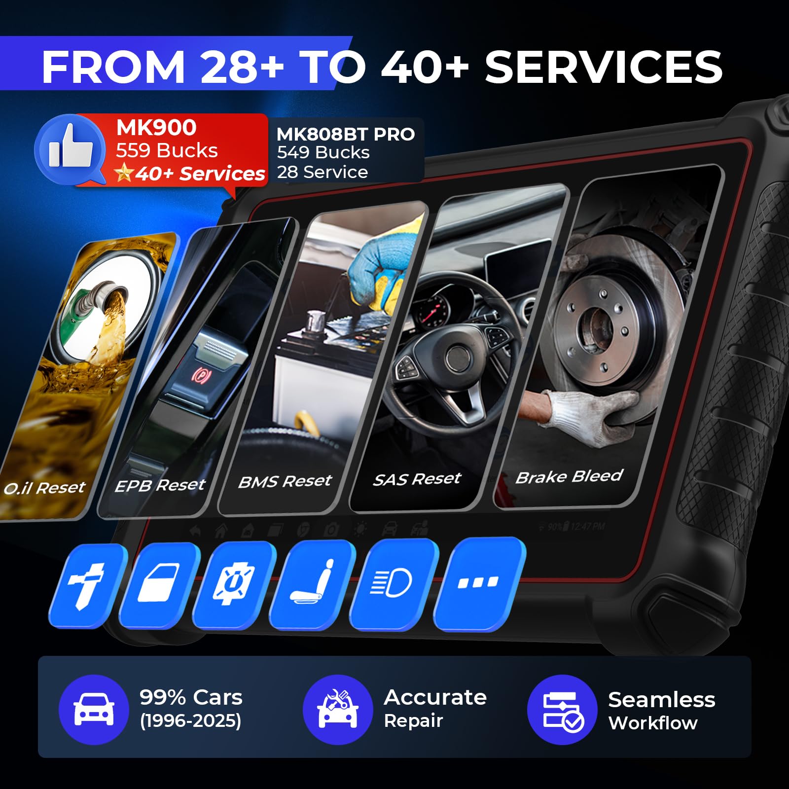 🚗【30+ Service Functions: Access to various service and maintenance works】 This Autel scan tool MP808S offers 30+ service functions. Oil reset performs a reset for the engine oil life system after an oil change. TPMS service quickly retrieves the tire sensor IDs from the ECU and resets the procedures after the tire sensors have been replaced. EPB service maintains the electronic brake system safely and effectively after a disk or pad change, etc.