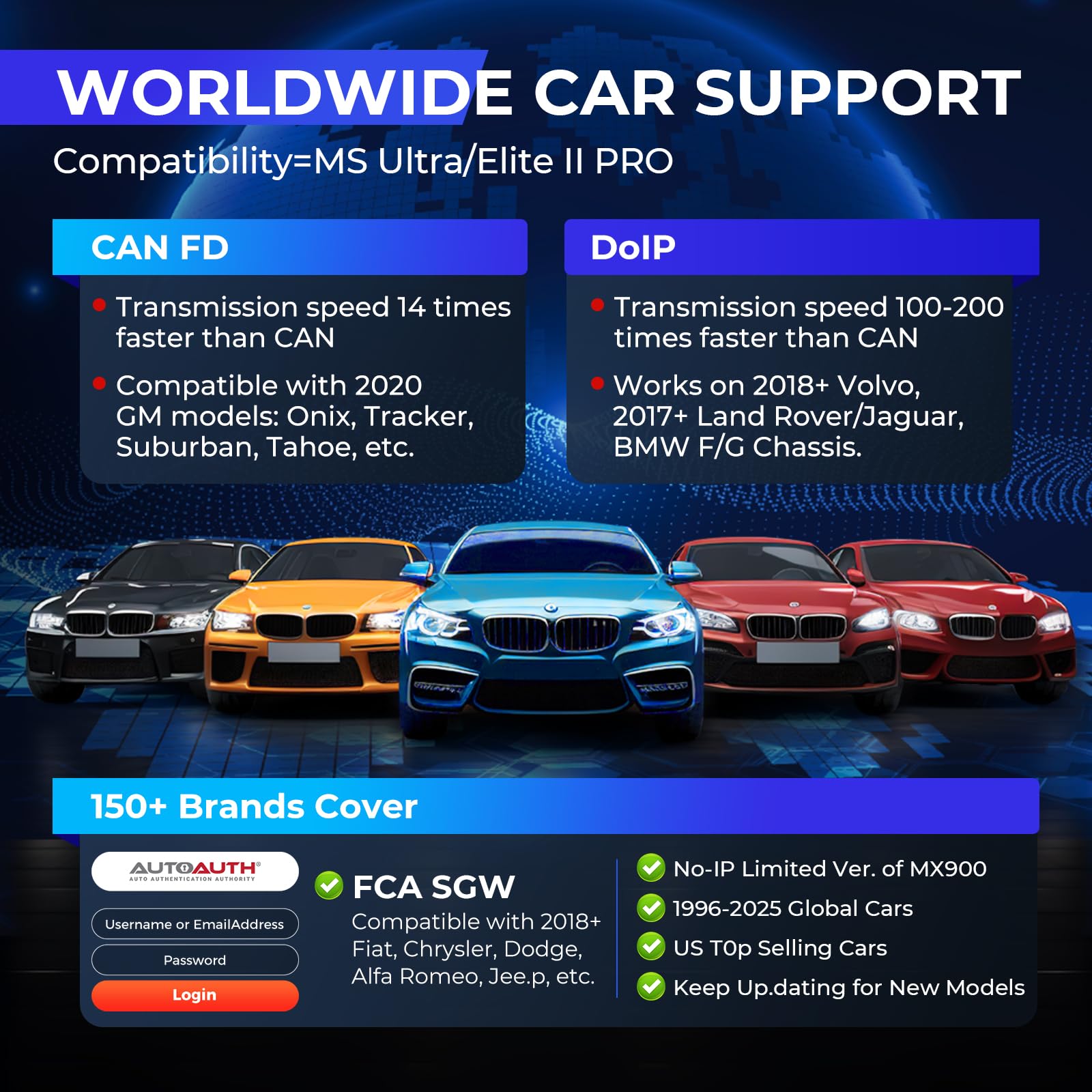 🚗【NOTE】: 1. The original language is English. If you need a German/other language, please send the S/N (12 digits on the back of the device) to us. 2. If you are not sure if MP808S is suitable for your car, please send us the VIN (17 digits) to check the functions. Some FCA models from 2018 require a Chrysler 12+8 connector for proper diagnosis. Please contact us for specific supported models.