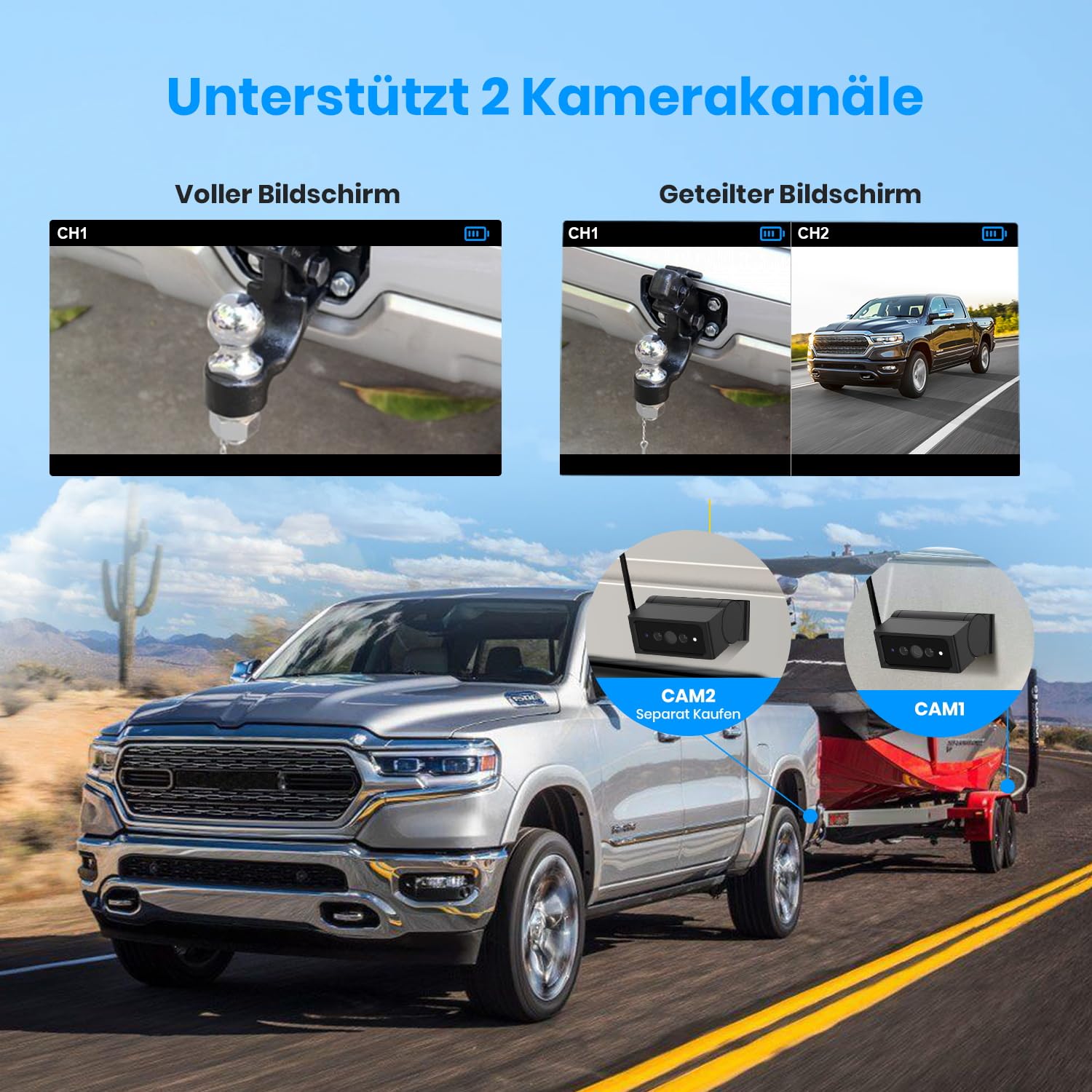 "1080P Clarity & Infrared Night Vision: Equipped with a 7\" 1080P monitor, this wireless backup camera system delivers sharp, clear images. Infrared lights automatically activate in low light conditions to ensure visibility without glare from headlights or strong sunlight",