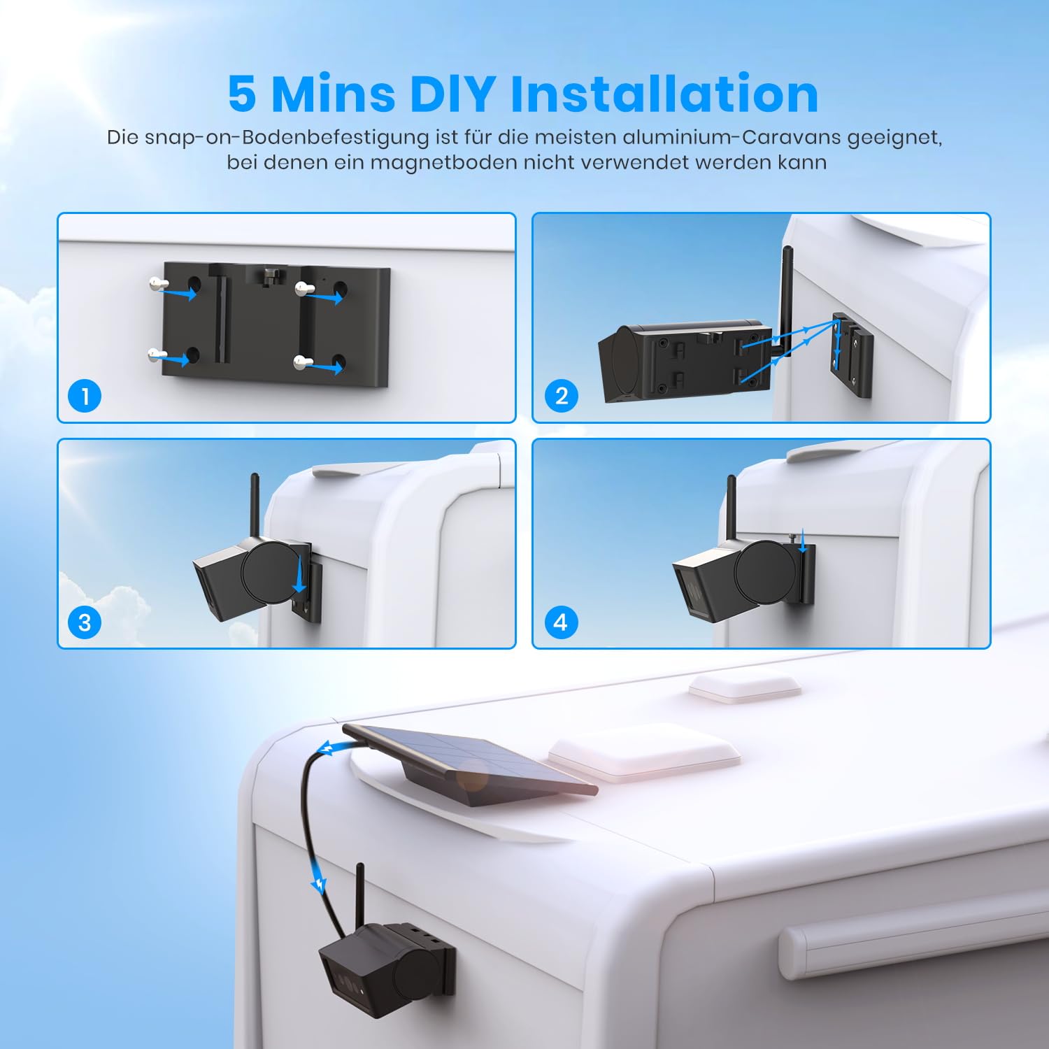 ["Effortless 5 Mins DIY Installation: Experience ultimate convenience with our wireless RV backup camera. No complicated wiring or high installation costs – simply mount, remove, or reposition the camera on different vehicles or locations",