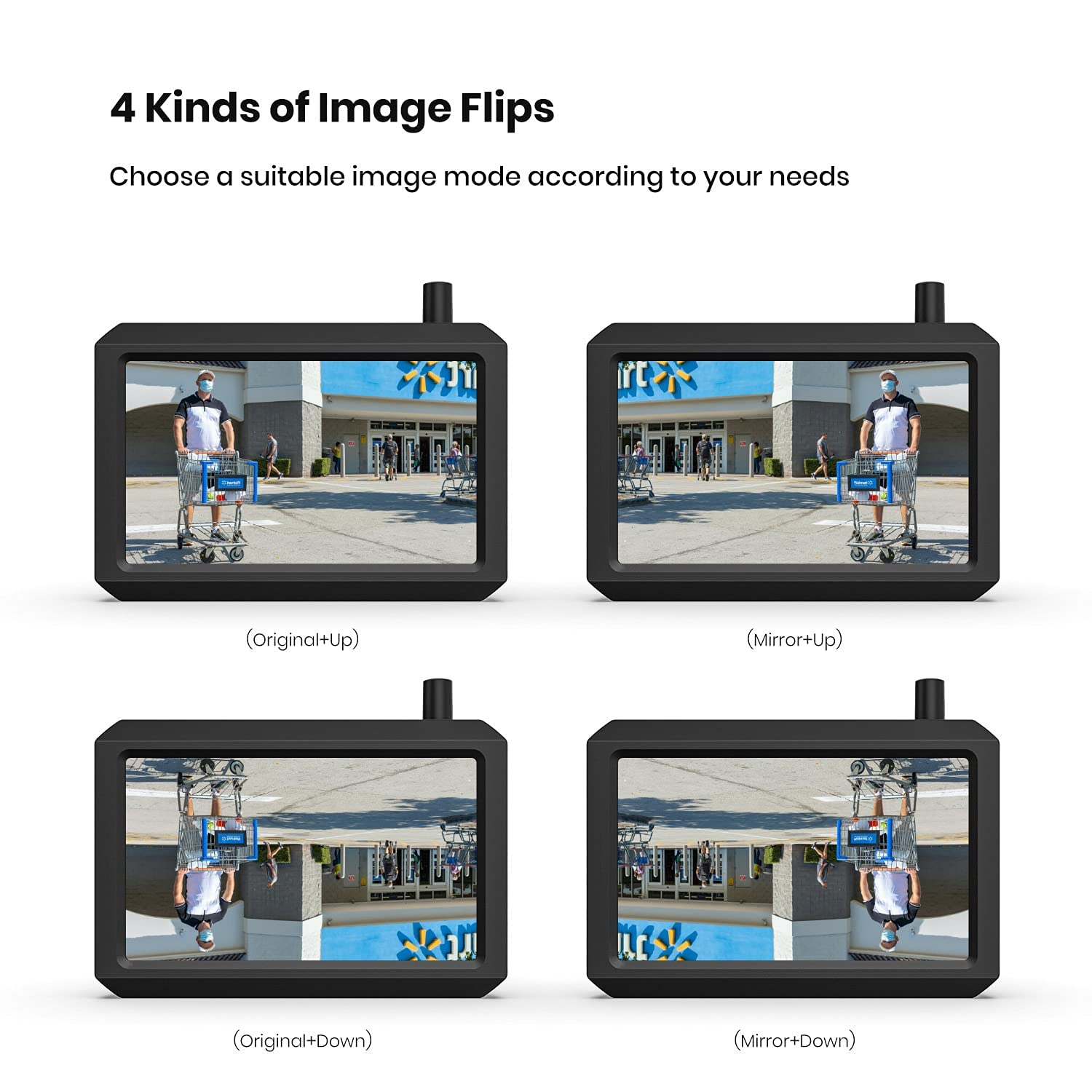 AUTO-VOX Wireless Backup Camera Kit supports 2 cameras for parking/surveillance, with a 720P wireless backup camera and 5" HD monitor. IP68 waterproof camera for trucks/SUVs.